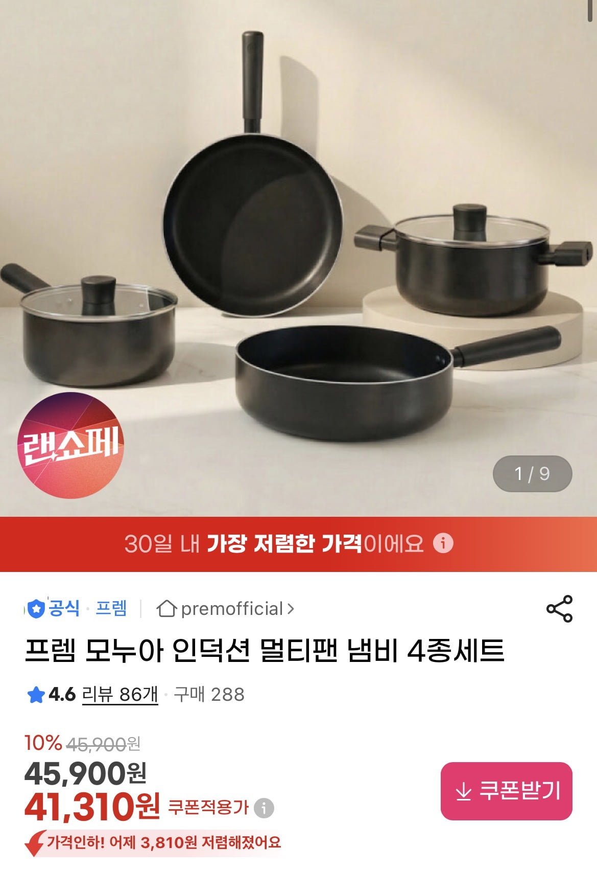[G마켓]프렘 모누아 인덕션 멀티팬 냄비 4종세트 (41,310원/무배)