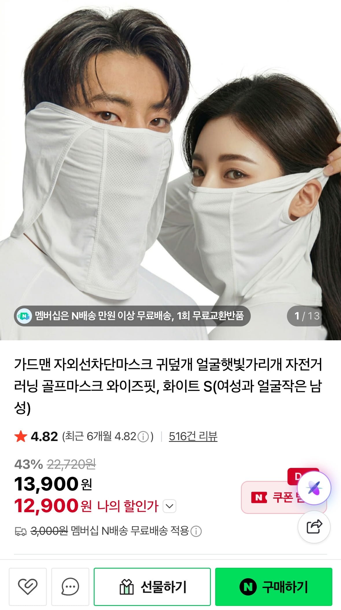 [네이버]가드맨 귀덮개 자외선차단마스크 (12,900원/네멤무료)