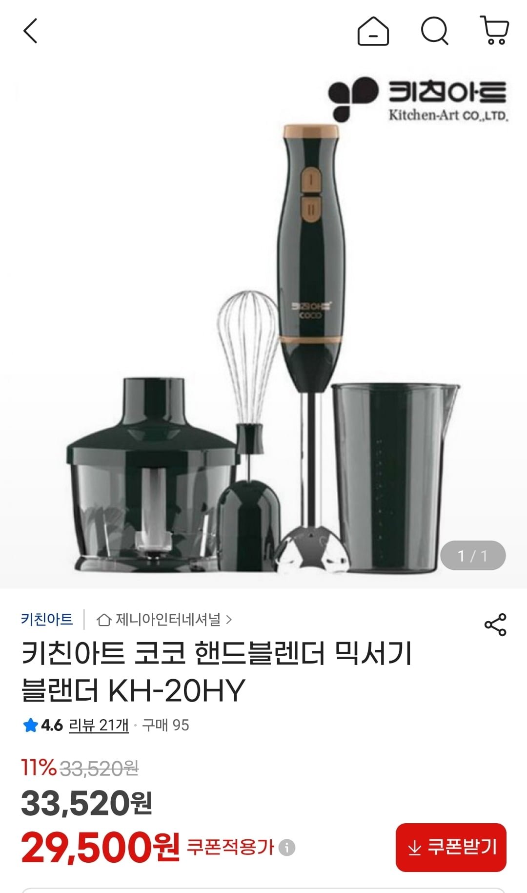 [지마켓]키친아트 핸드블렌더 믹서기 KH-20HY (29,500원/무료) - 딜모아