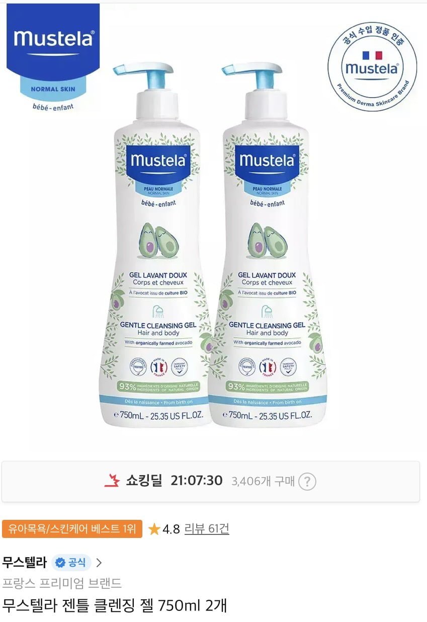 [11번가]무스텔라 젠틀 클렌징 젤 750ml 2개(35,000원/무료) - 딜모아
