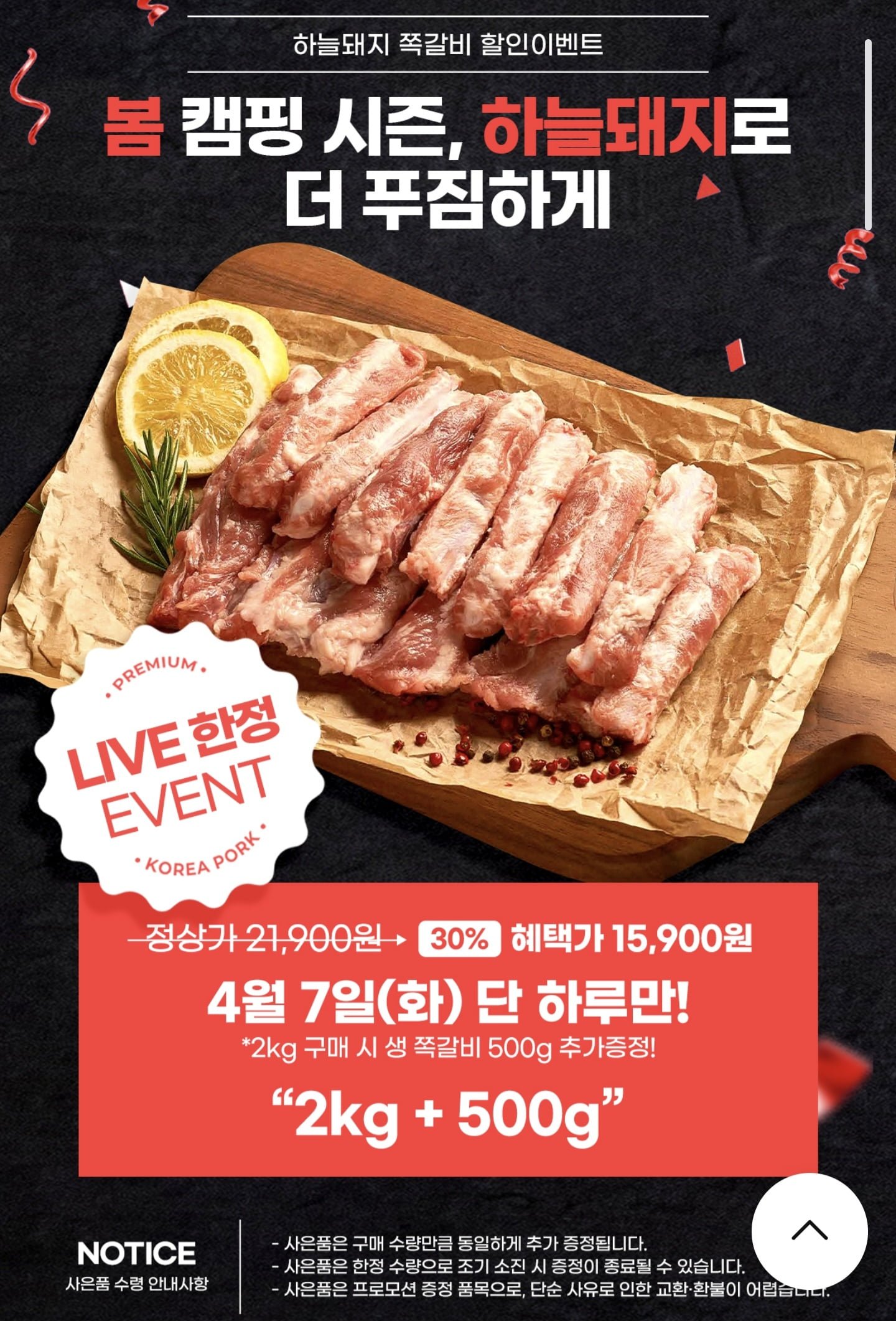 [NS몰]국내산 못난이 생쪽갈비 2kg+500g 추가 (15,900원/무료)