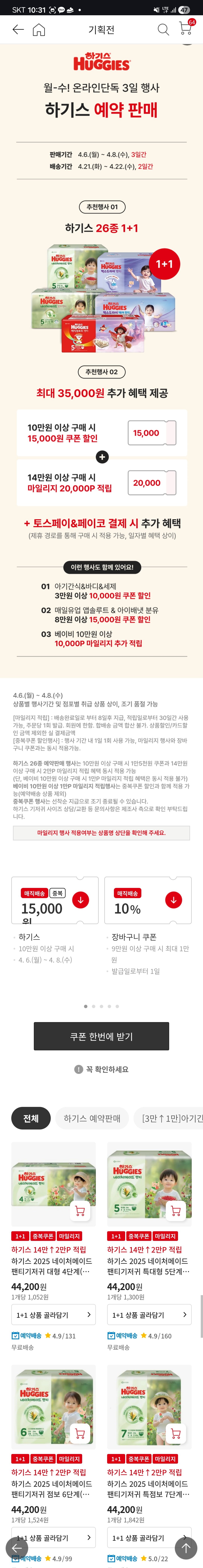 홈플러스온라인)하기스 최대 67.7% 할인 네이처메이드 밴드 2~3단계 8팩 (120,200원/무배)