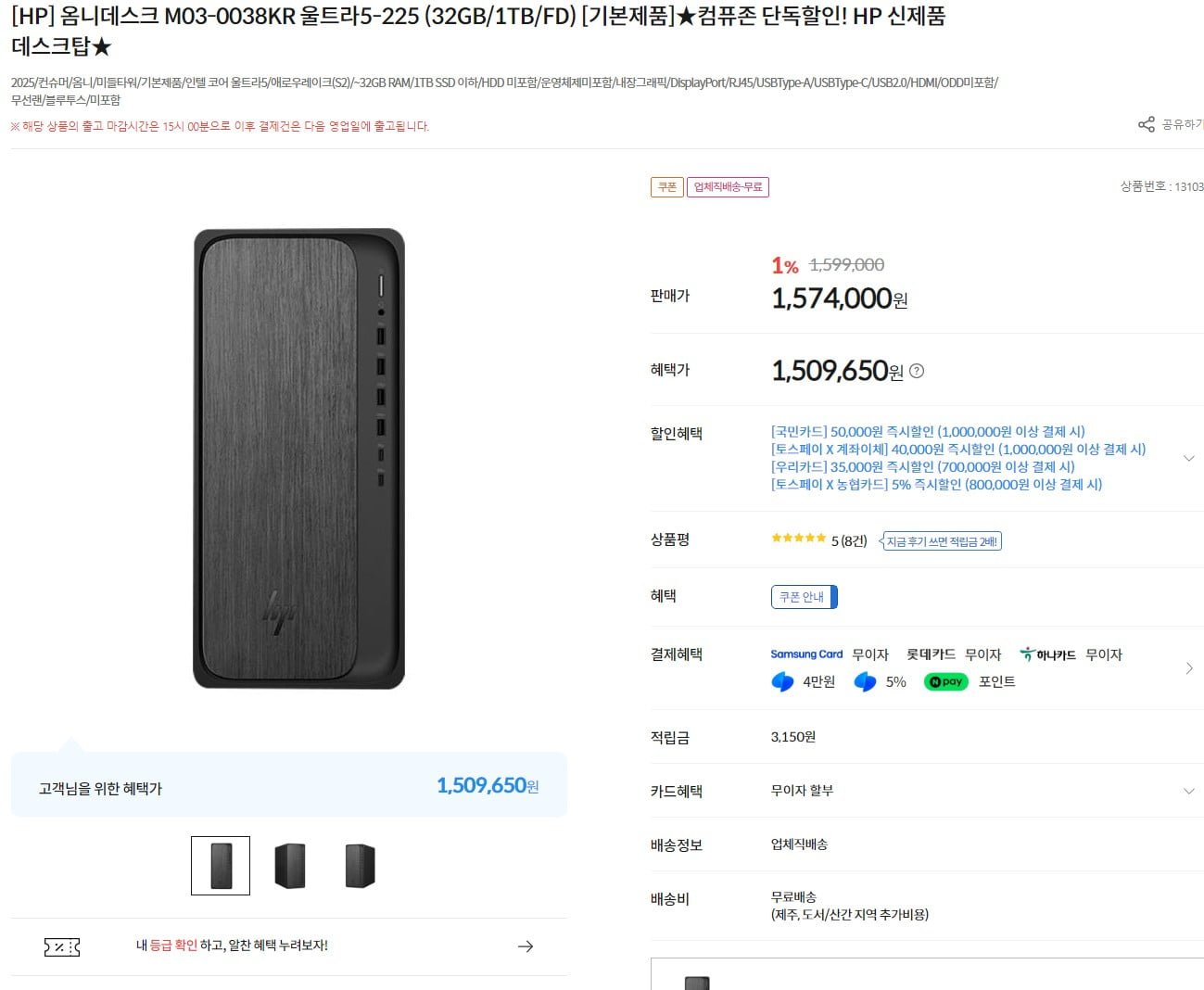 [컴퓨존][HP] 옴니데스크 M03-0038KR 울트라5-225 (32GB/1TB/FD) (1,509,650원/무료)