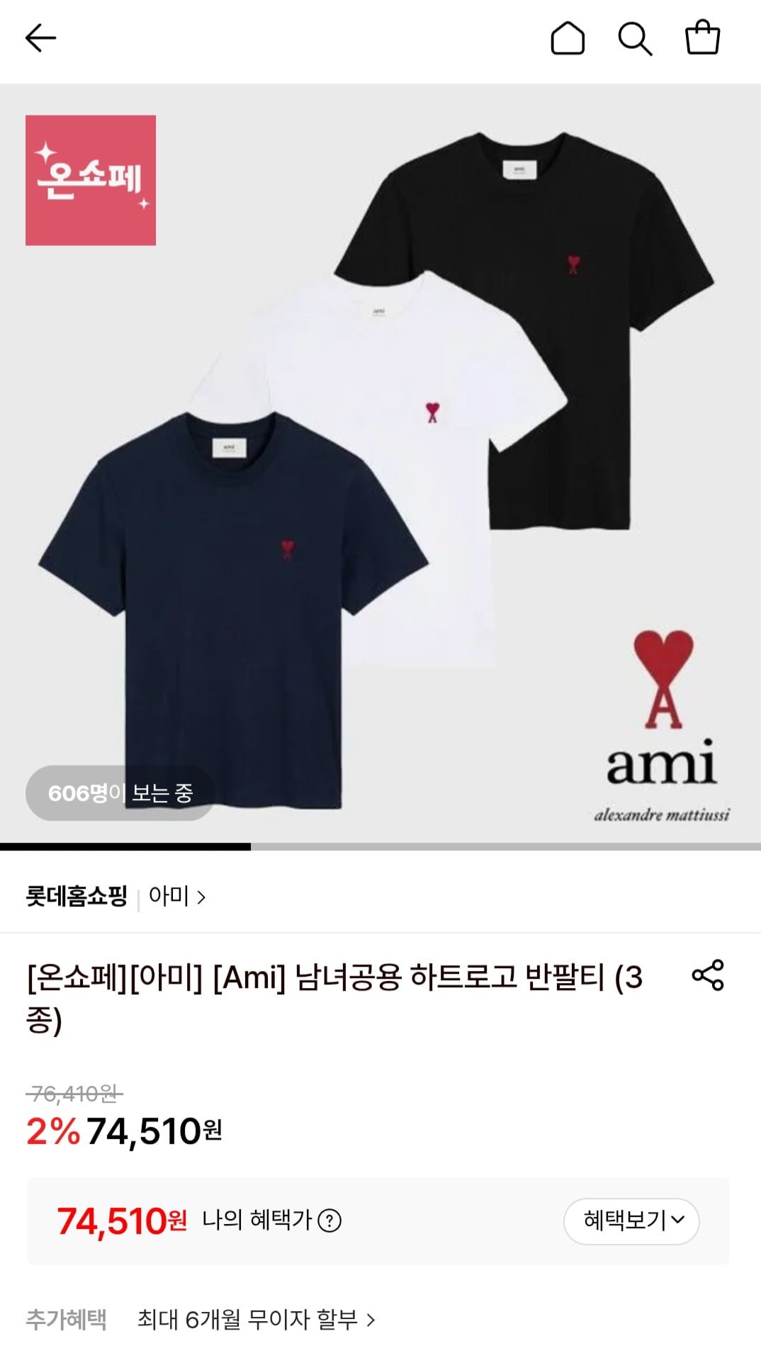 [롯데홈쇼핑]아미 하트로고 반팔티 (74,510원/무료)