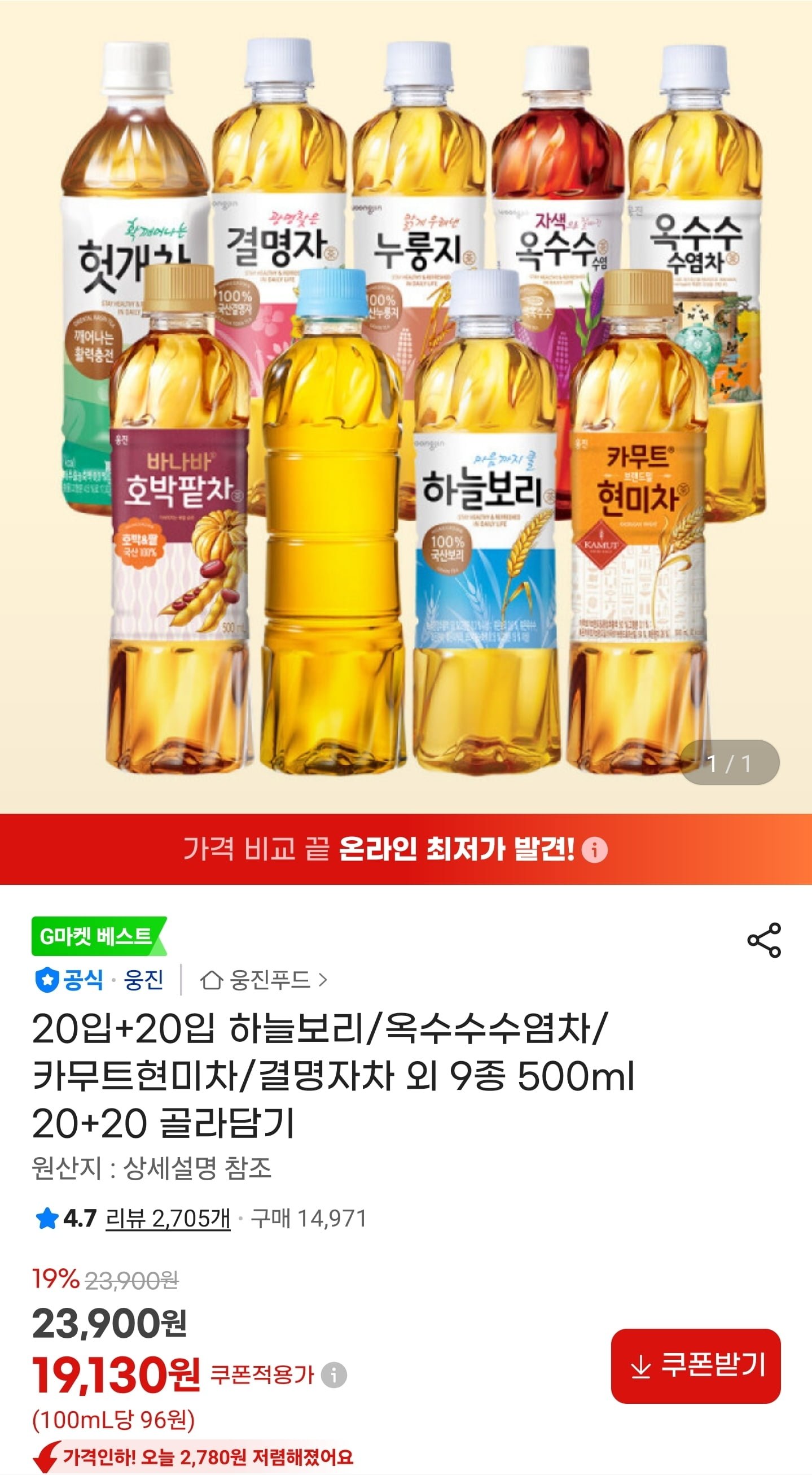 [지마켓]하늘보리/옥수수수염차/결장자차 외 40입 (19,130원/무료)