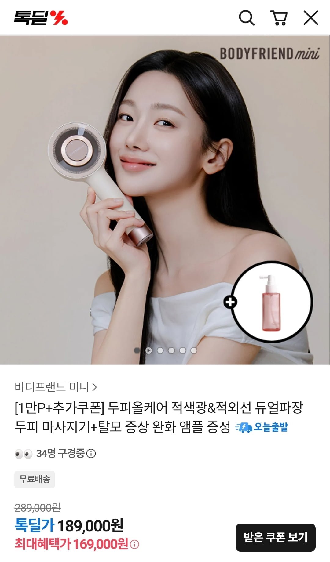 [카카오]바디프랜드 미니 두피올케어 두피마사지기 (169,000원/무료) - 딜모아