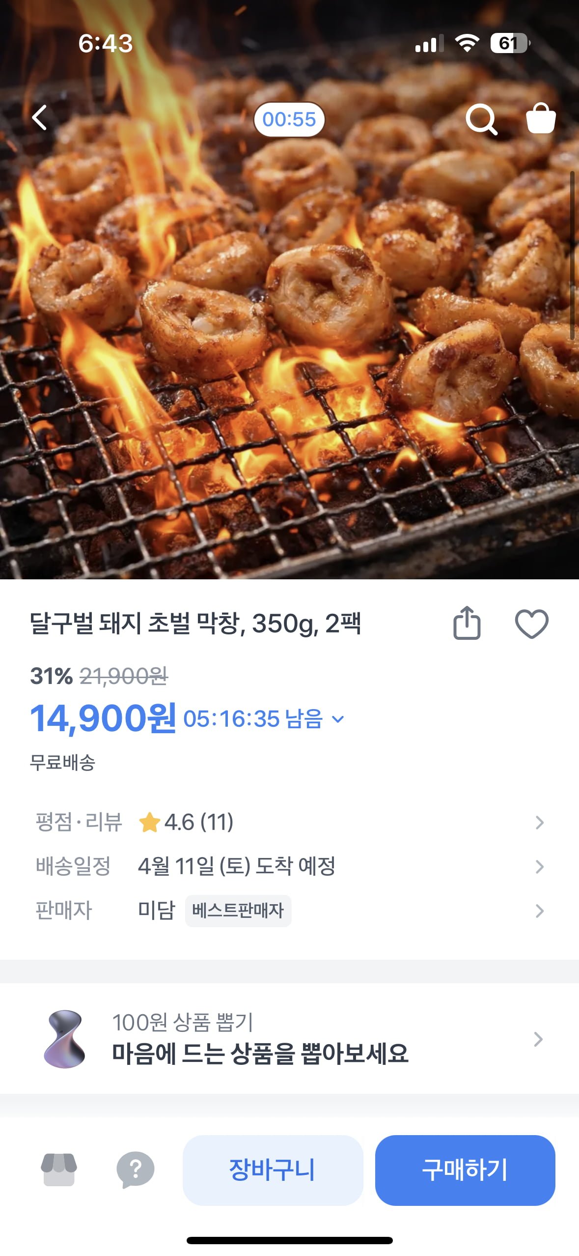 [토스]달구벌 돼지초벌막창 350g 2팩 (14,900원/무배) - 딜모아