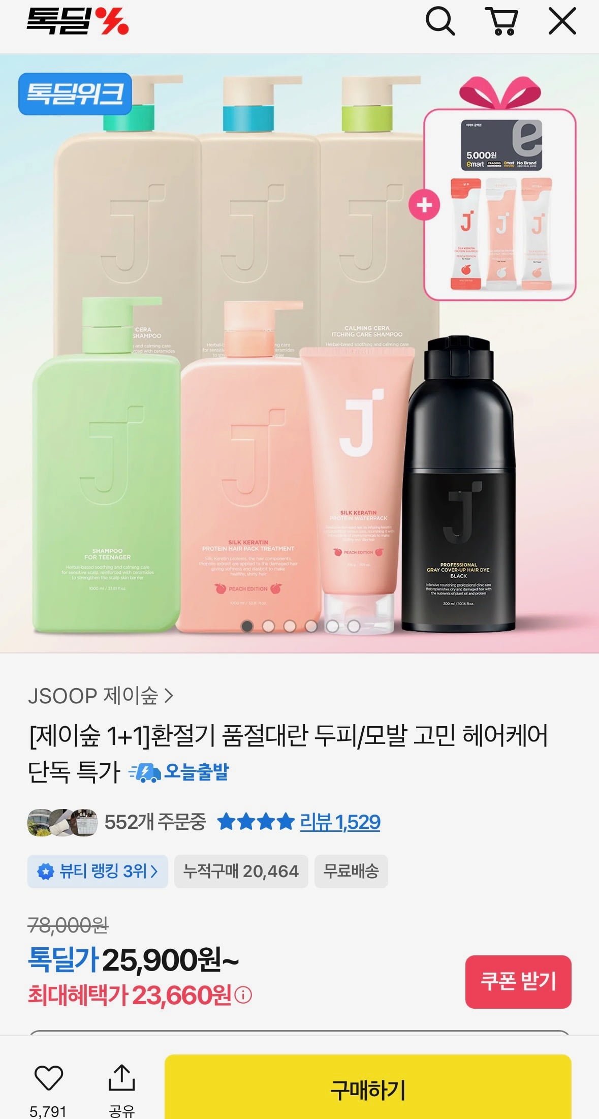[톡딜]제이숲 [1+1] 환절기 두피/모발 헤어케어 샴푸 트리트먼트 모음전 (다양/무료) - 딜모아