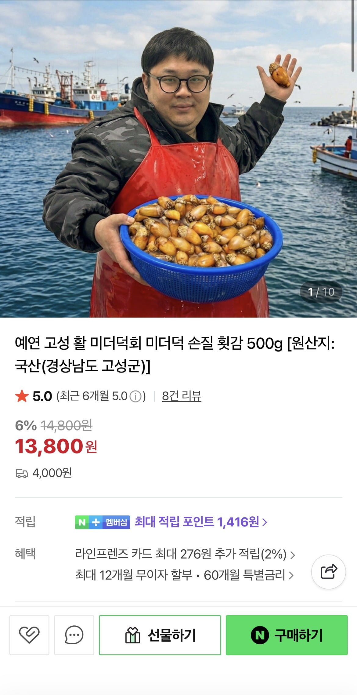 [네이버]활 미더덕회 500g (13,800원/4,000원)