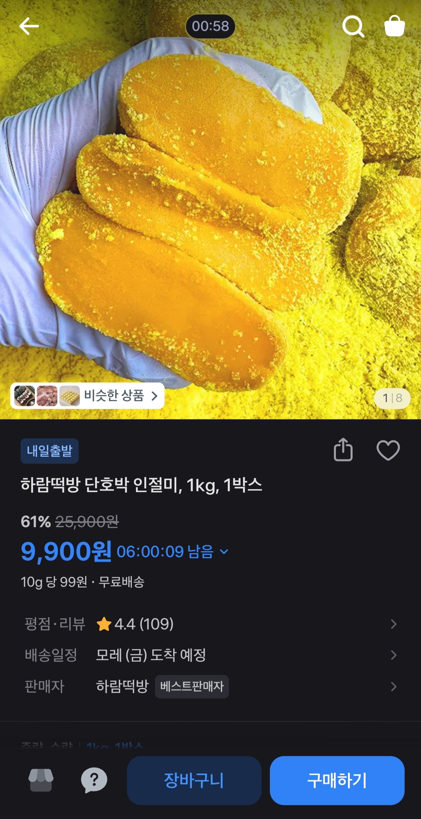 [토스]하람떡방 단호박 인절미 1kg+카스테라 가루150g (9,900원/무료) - 딜모아