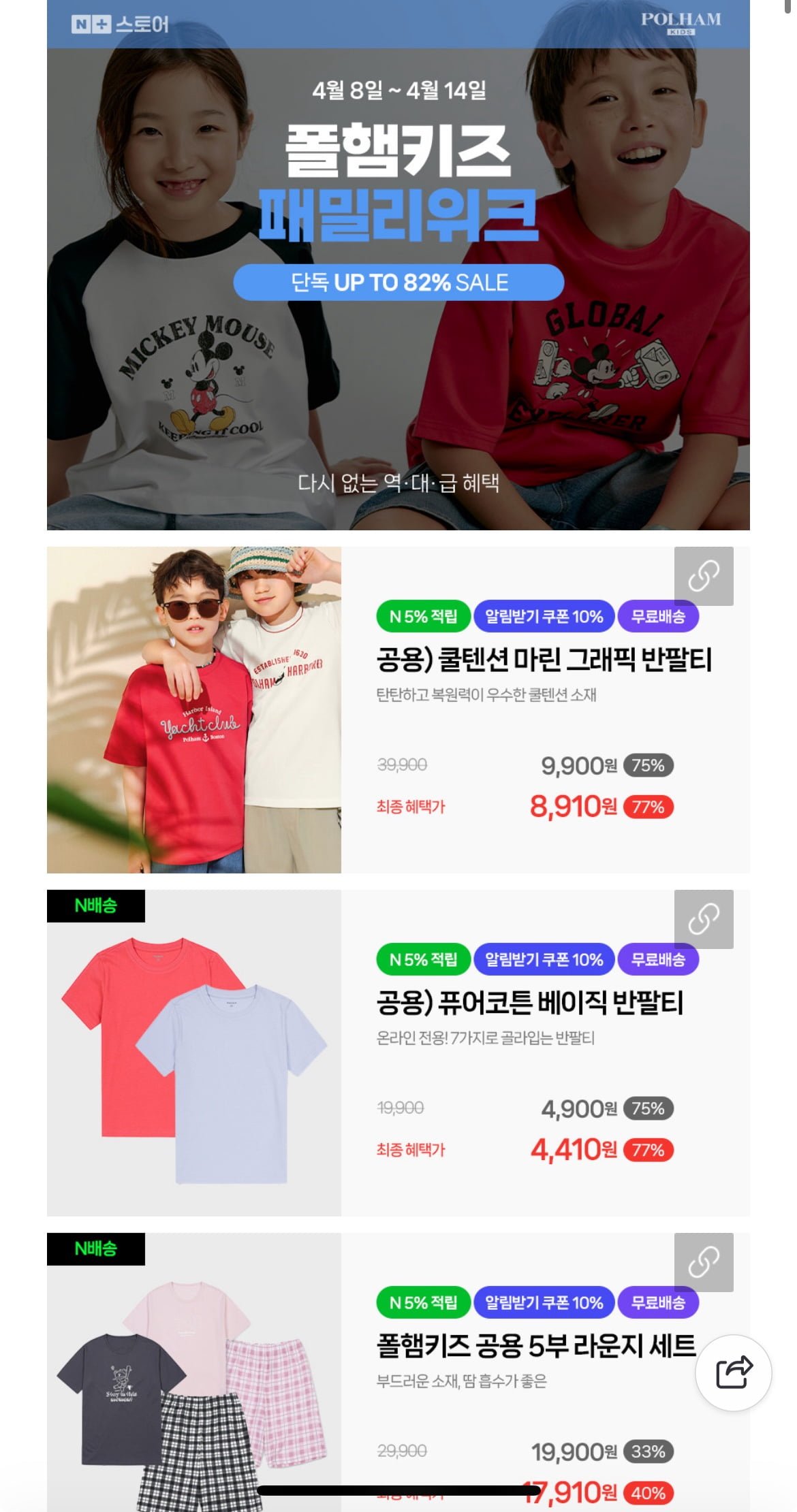 [네이버]폴햄키즈 고용 쿨텐션 5부 숏츠 (7,190원무료)