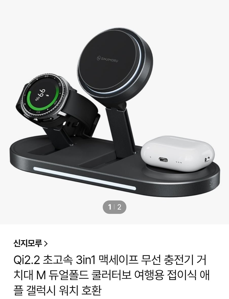 [cj온스타일]신지모루 qi2.2 인증 3 in 1 무선 충전기(34,501원/무료)