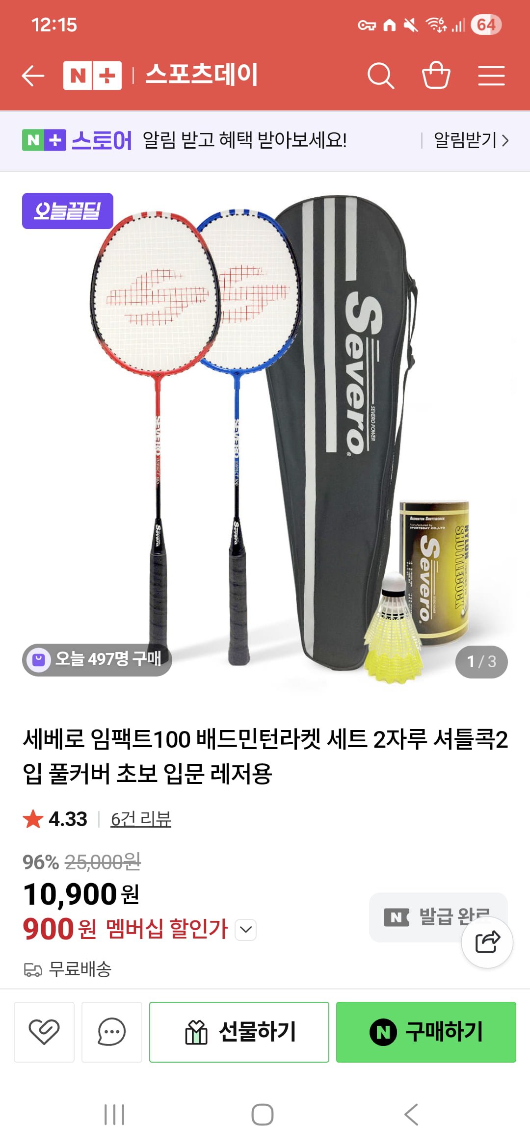 [네이버]배드민턴 셔틀콕 세트 네이버멤버쉽 (900/무배)