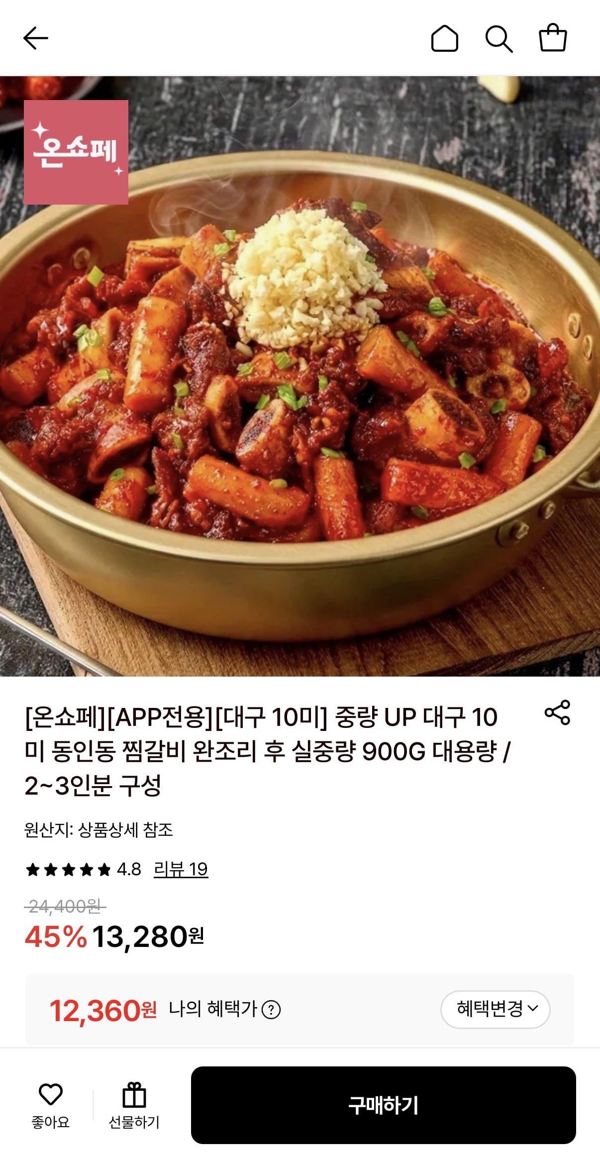 [롯데온]동인동 소갈비찜 실중량 900G (12,360원/무배)