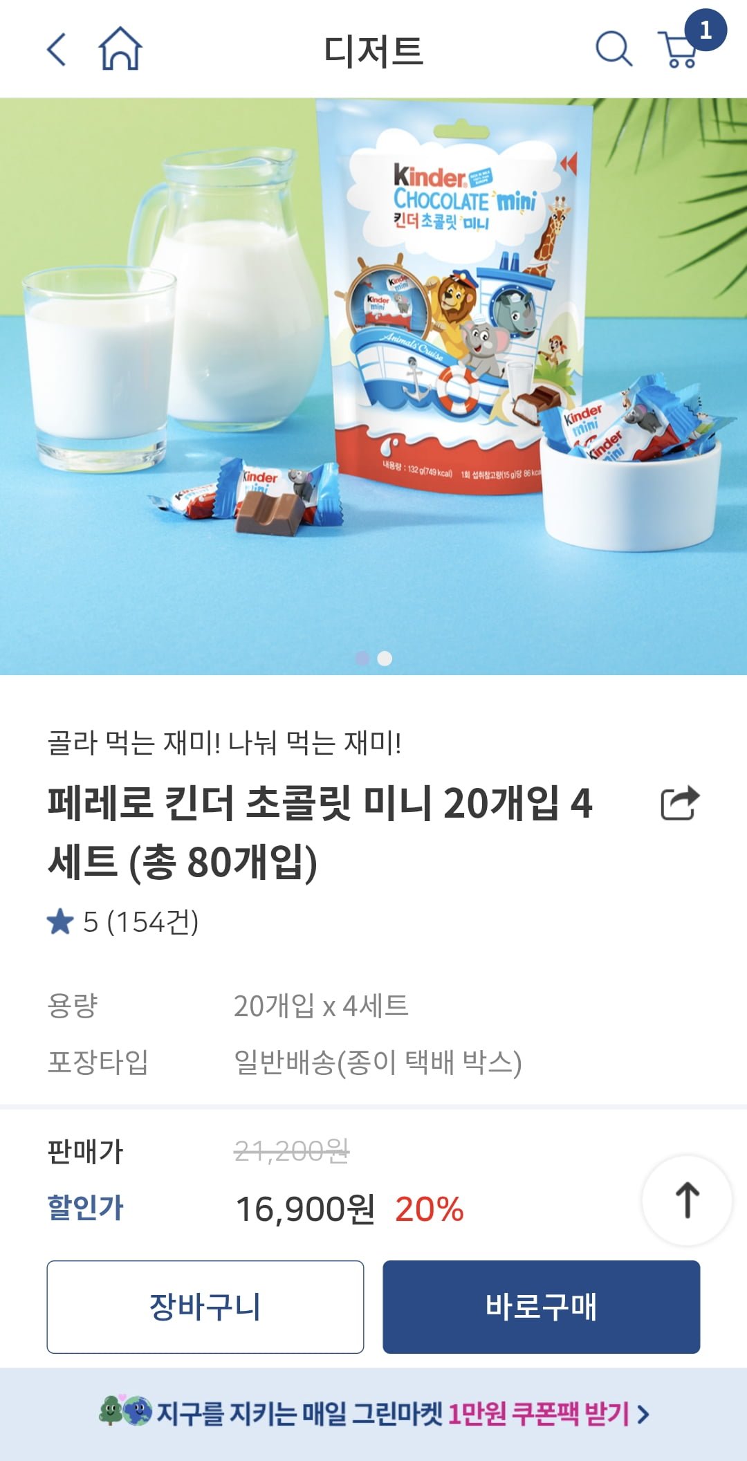 [매일유업]끌올 페레로 킨더 초콜릿 미니 20개입 4세트 총80개(12,720원/무료)