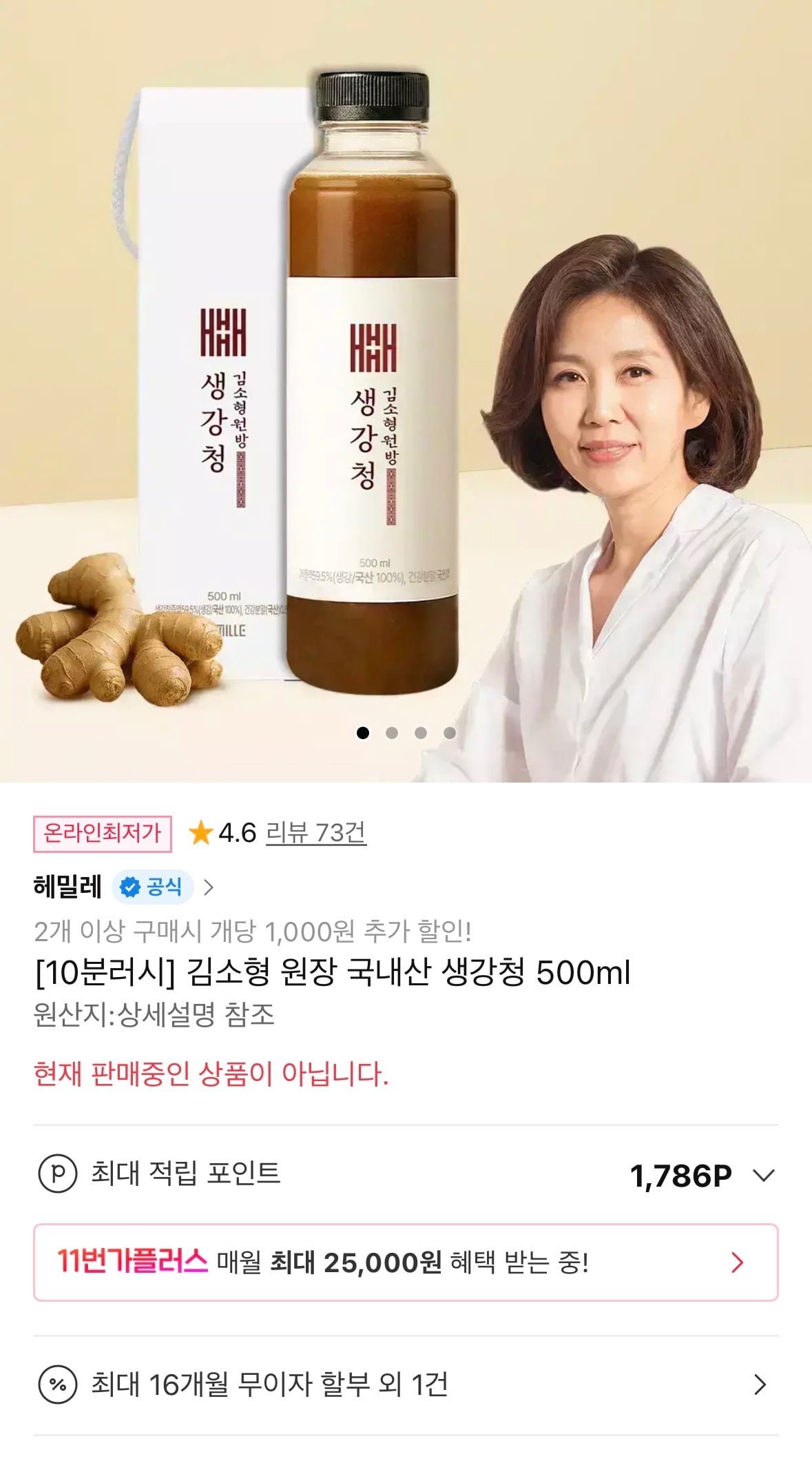[11번가]10분러시 김소형 원장 국내산 생강청 500ml (15,990원/무료)