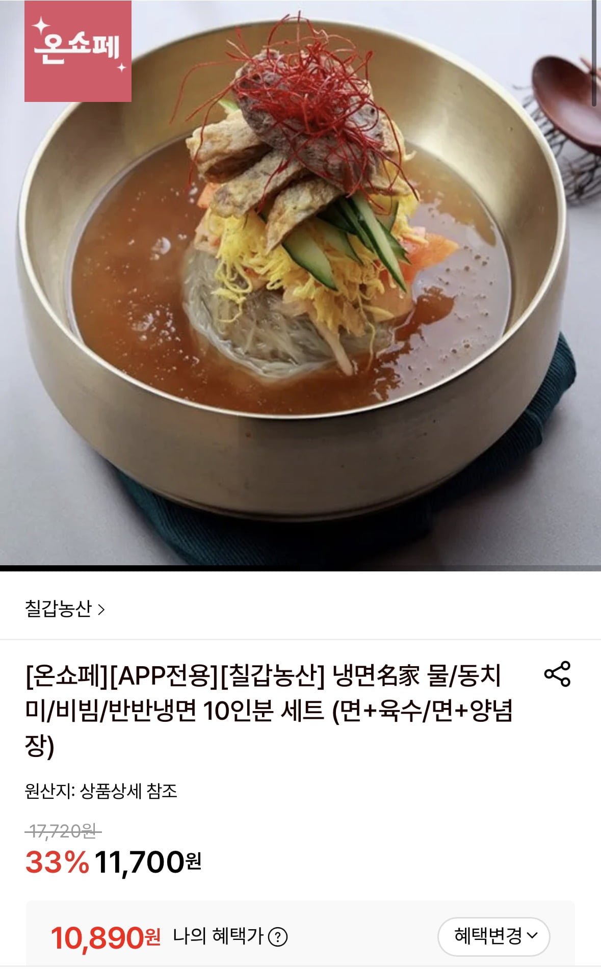 [롯데온]칠갑농산 물/동치미/비빔/반반냉면 10인분 세트 (10,890원~/무료) - 딜모아