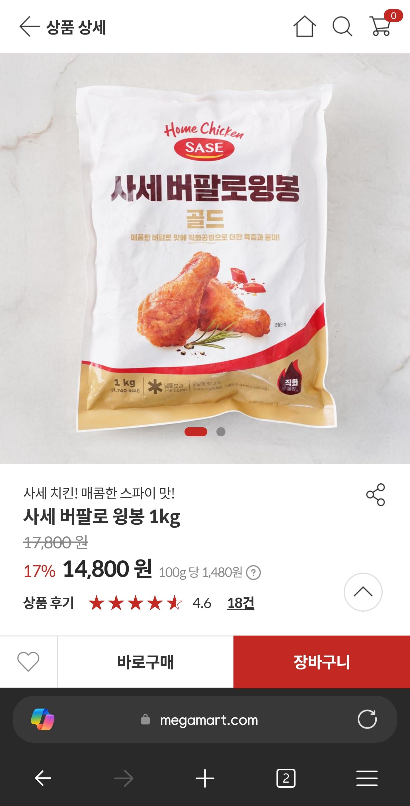 [메가마트]버팔로윙 골드1kg/윙봉골드 1kg(16,800원/14,800원)