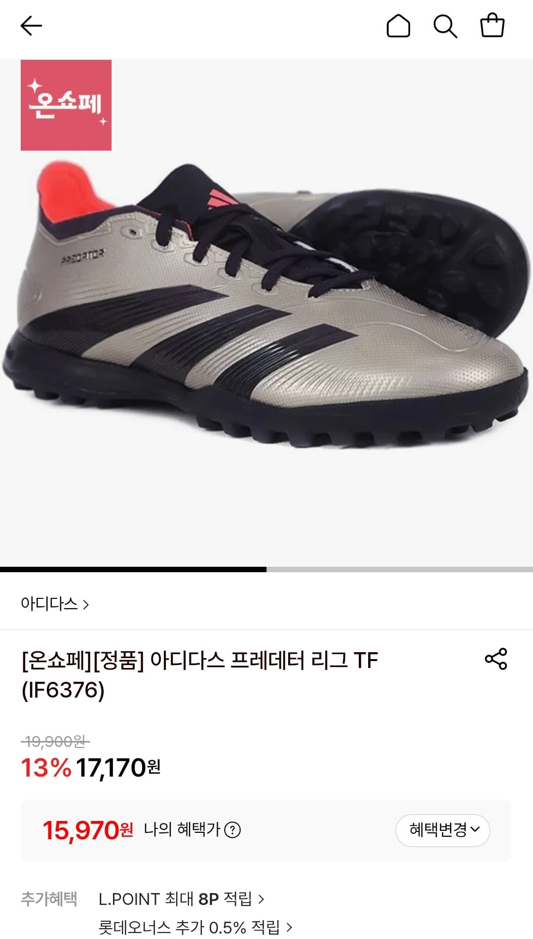 [롯데온]아디다스 프레데터 리그 TF (15,970원/3,000원)