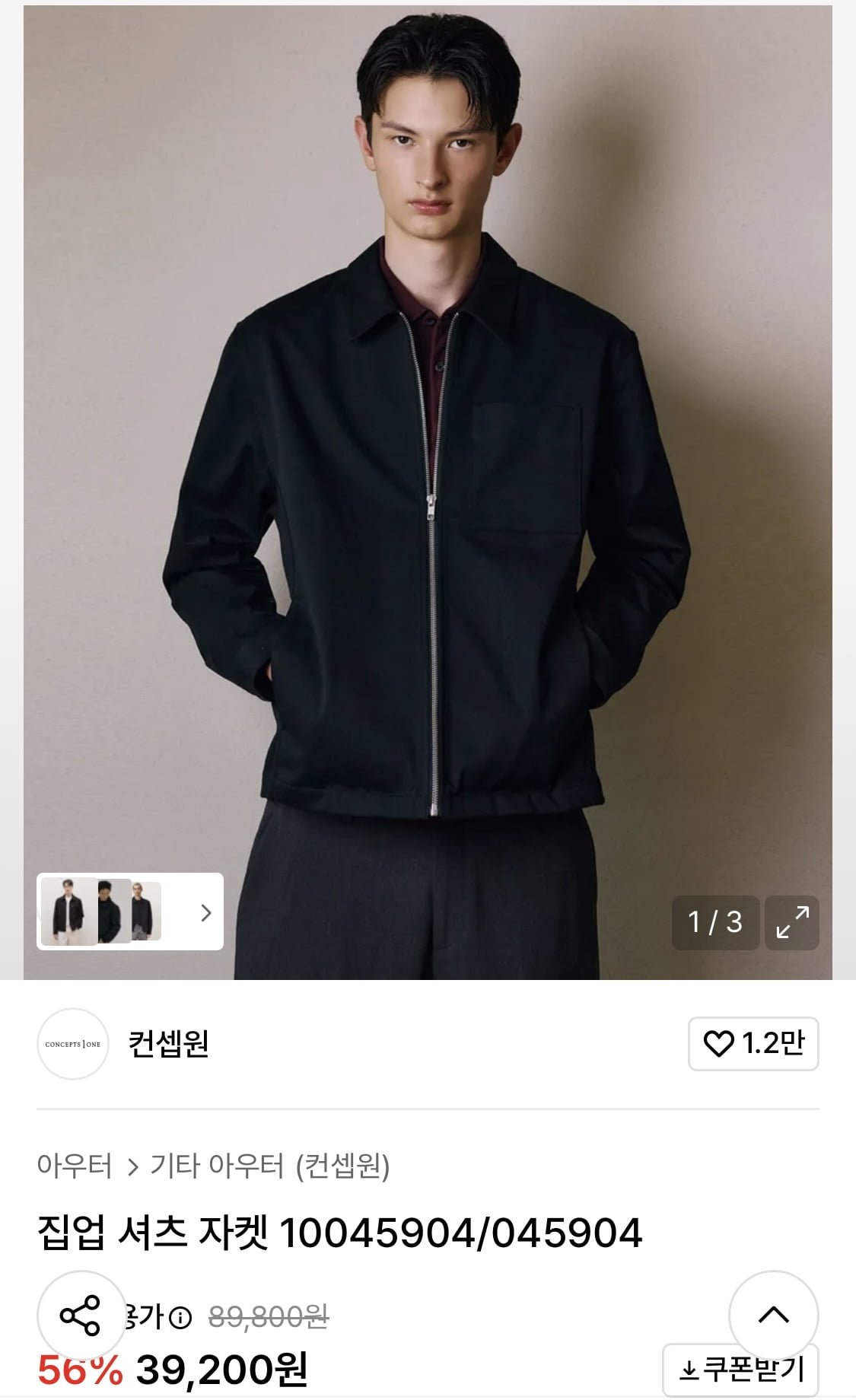 [무신사]컨셉원 아우터 집업 셔켓 2종 (39,200원/무료)