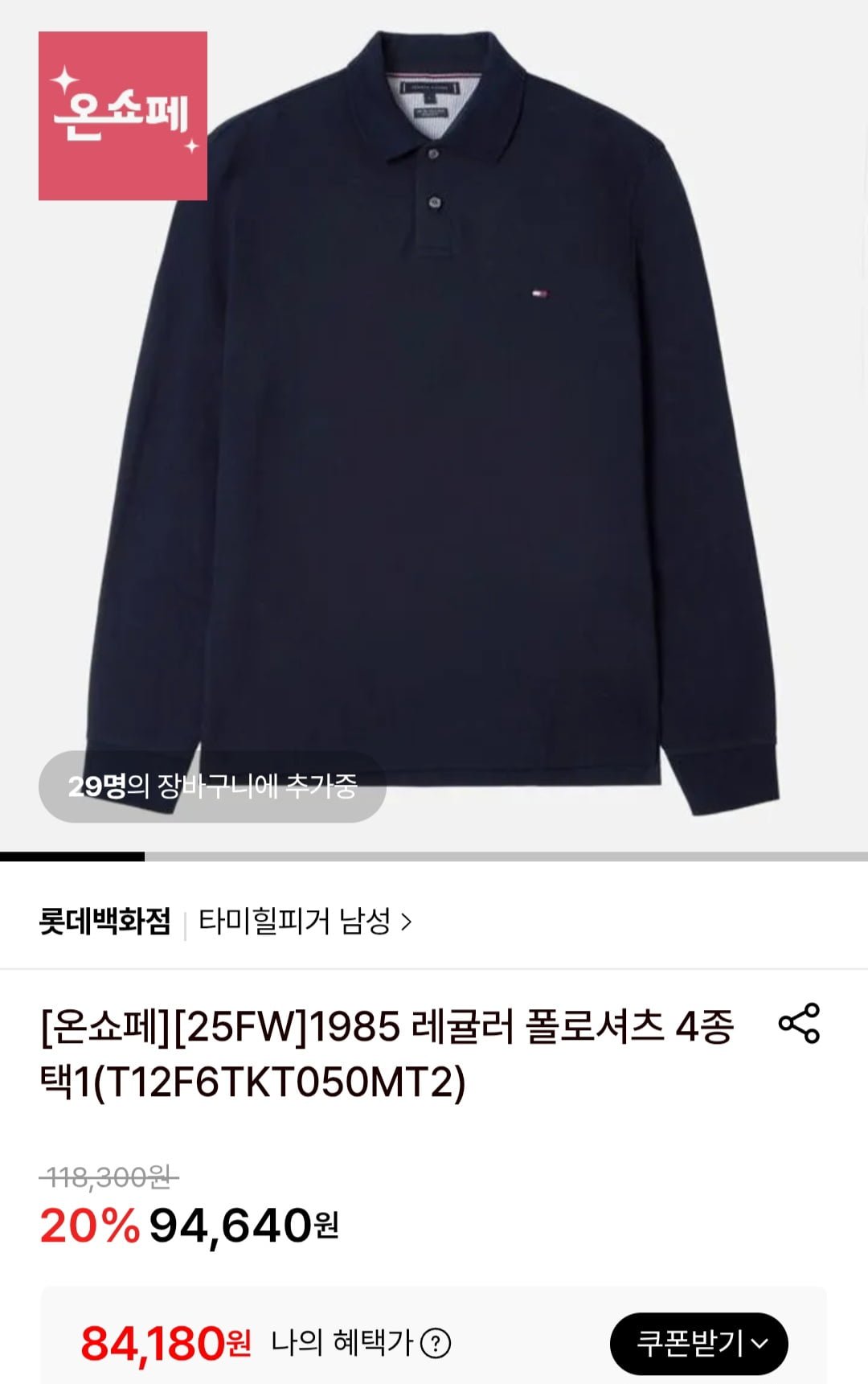 [롯데온]1985 레귤러 폴로셔츠 4종 택1 (84,180원/무료)