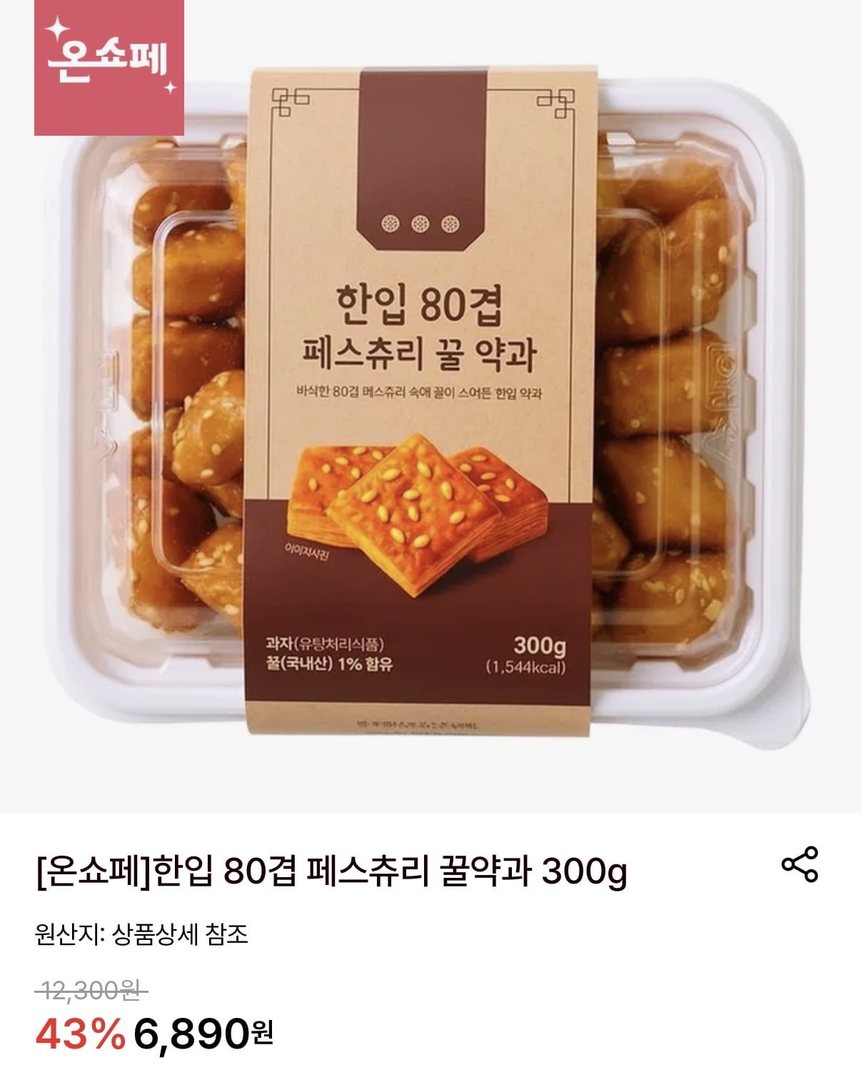 [롯데온]한입 80겹 페스츄리 꿀약과 300g (6,890원/무료)