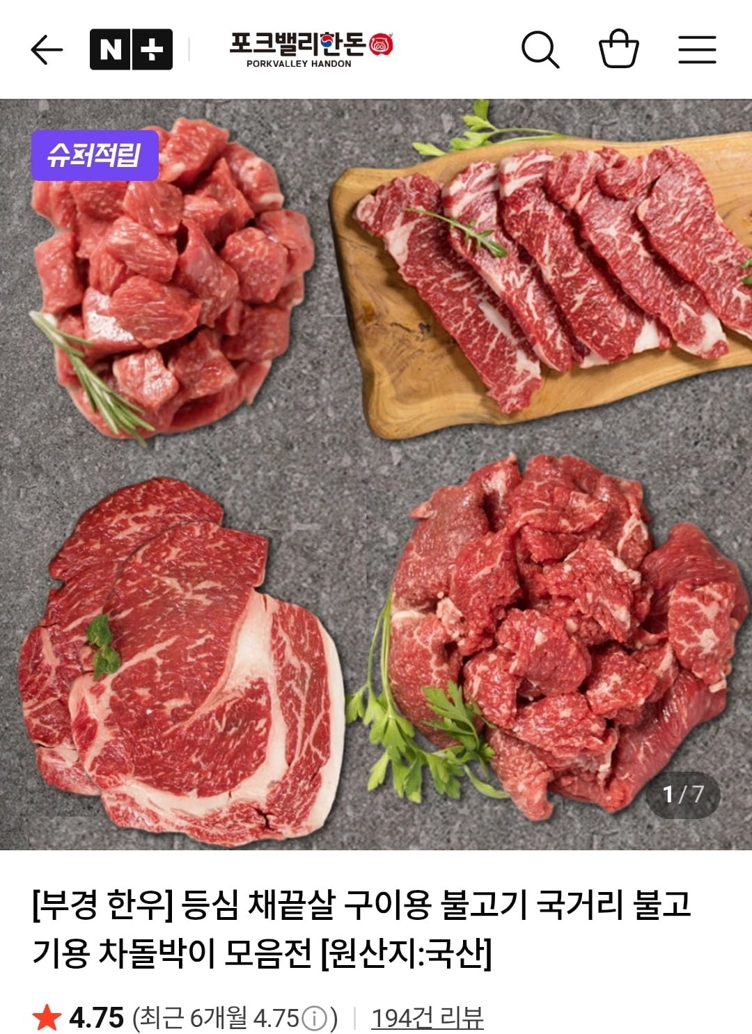 [네이버]한우등심1등급 500g(34,830원/멤버쉽무배)