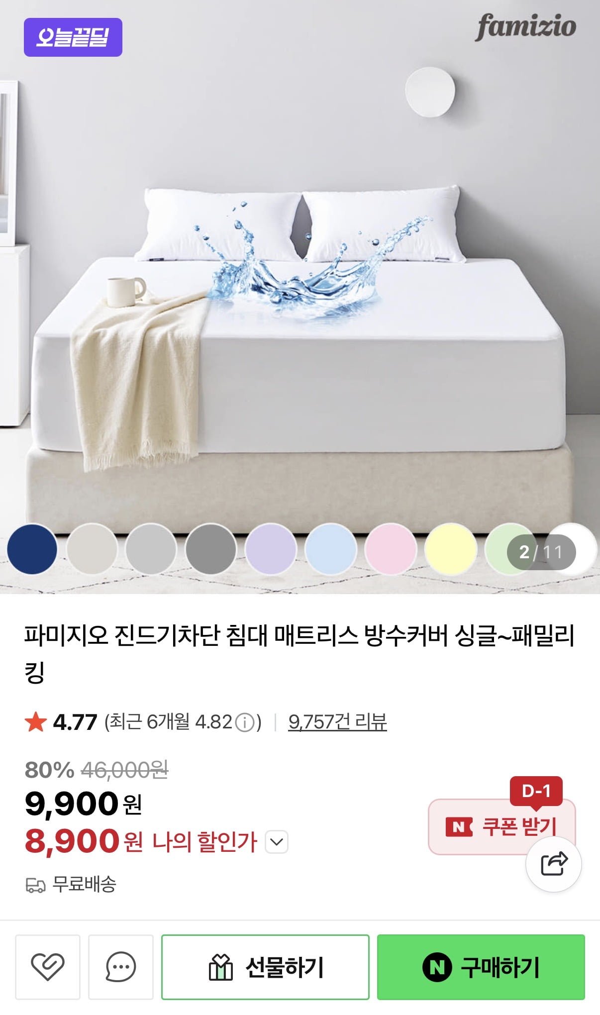 [네이버]진드기차단 침대 매트리스 방수커버 (8,900원/무료)