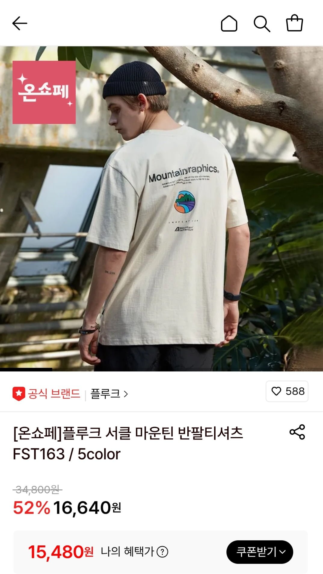 [롯데온]플루크 서클 마운틴 반팔티셔츠 (15,480원/무료)