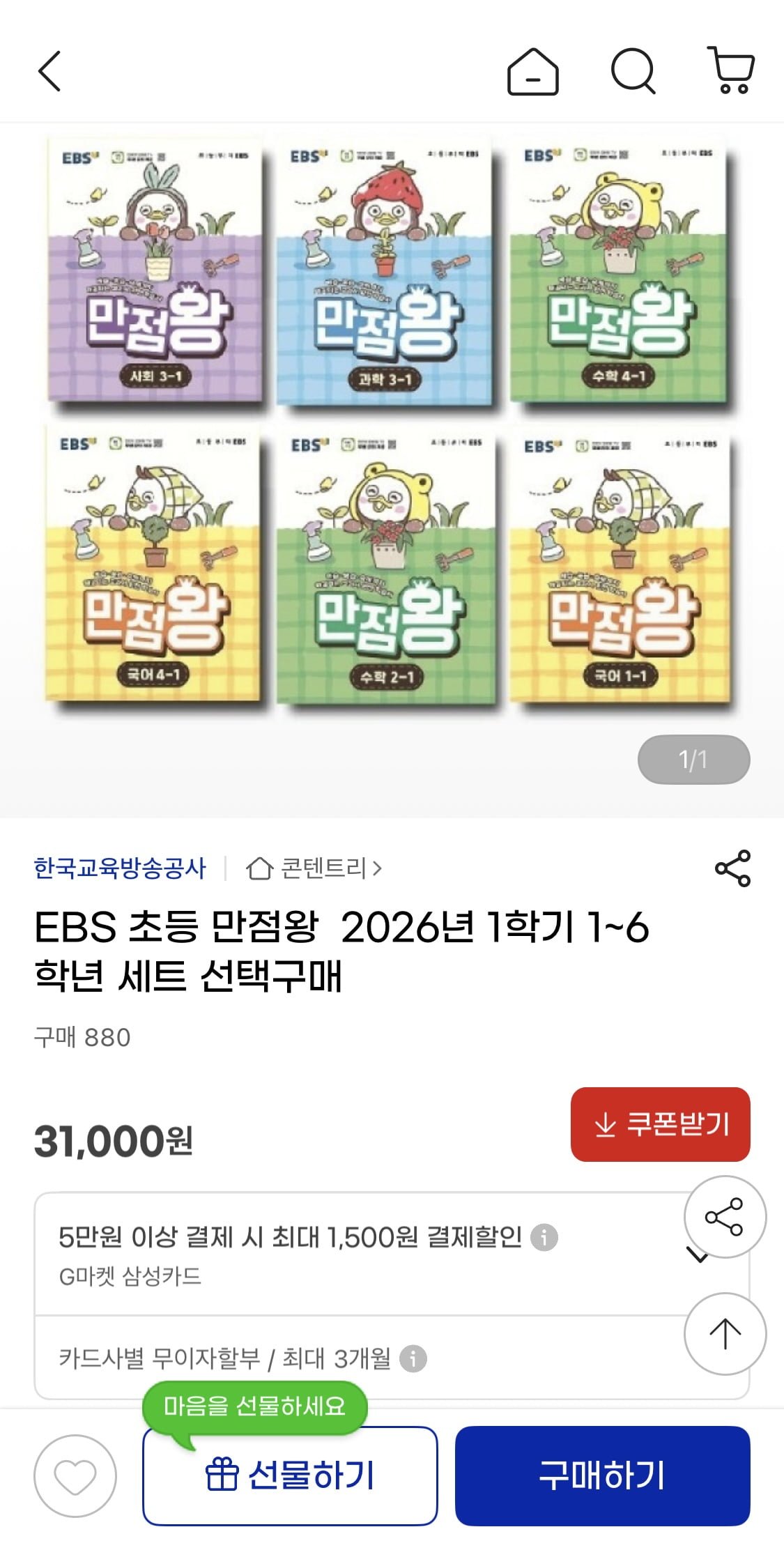 [G마켓]EBS 만점왕 2026년 1학기 전학년 특가 (23,250/무배)