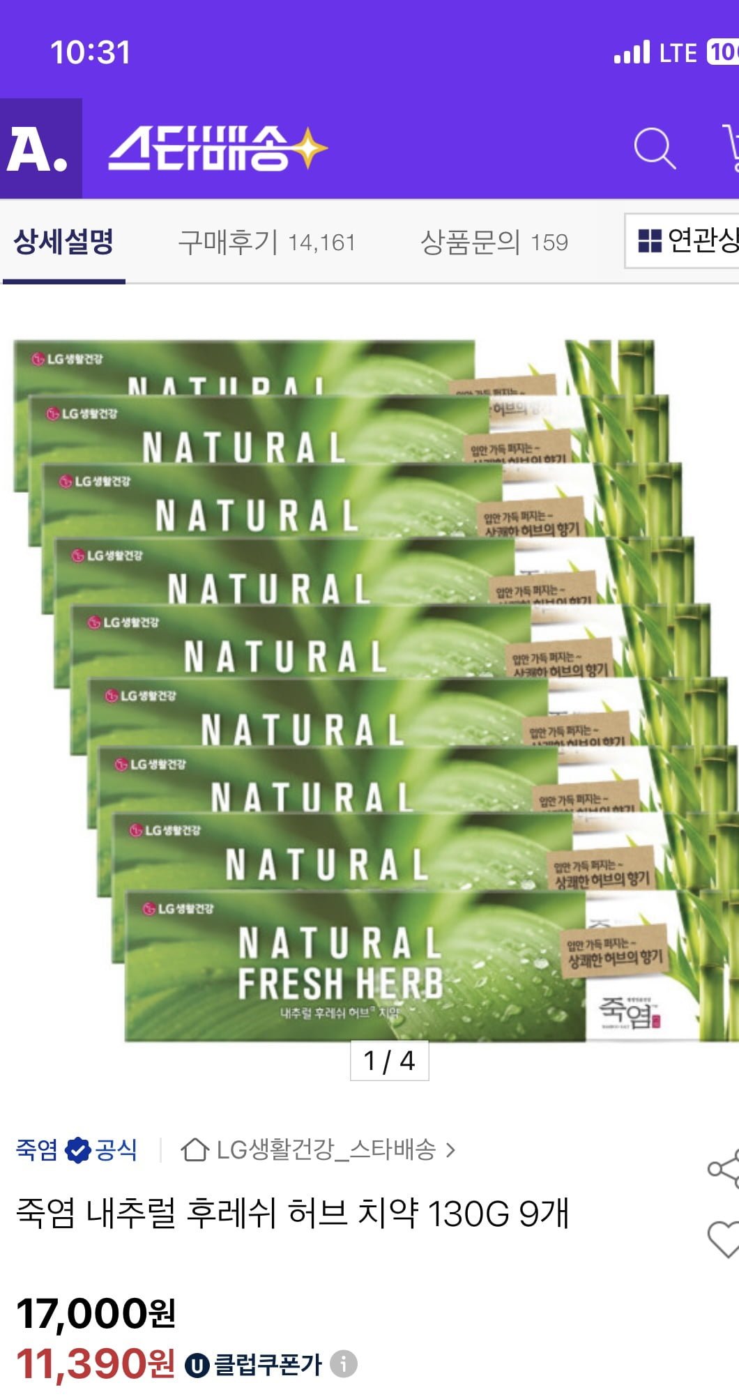 [옥션]죽염 내추럴 후레쉬 허브 치약 130G 9개(10,250원/무료)