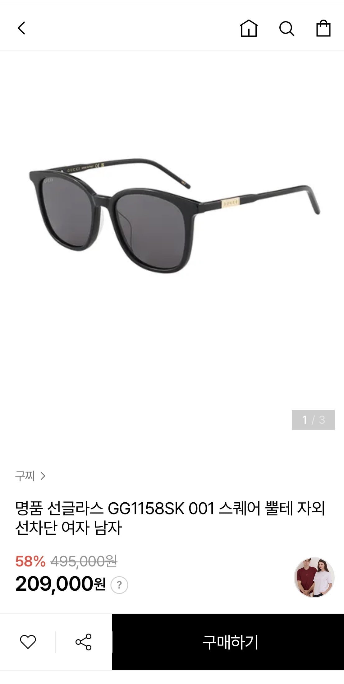 [하프클럽]구찌 GG1158SK 001 스퀘어 뿔테 선글라스 (182,875원/무료배송) - 딜모아