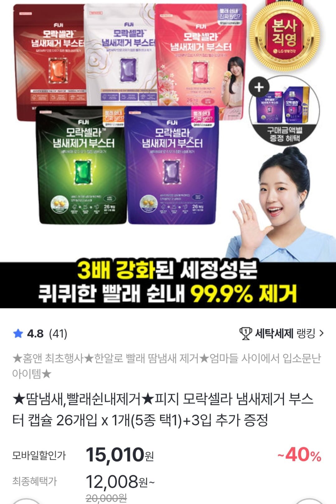 [홈앤쇼핑]피지 모락셀라 냄새제거 부스터 캡슐 26개입 x 1개(5종 택1)+3입 추가 증정 (15,010원/무료) - 딜모아