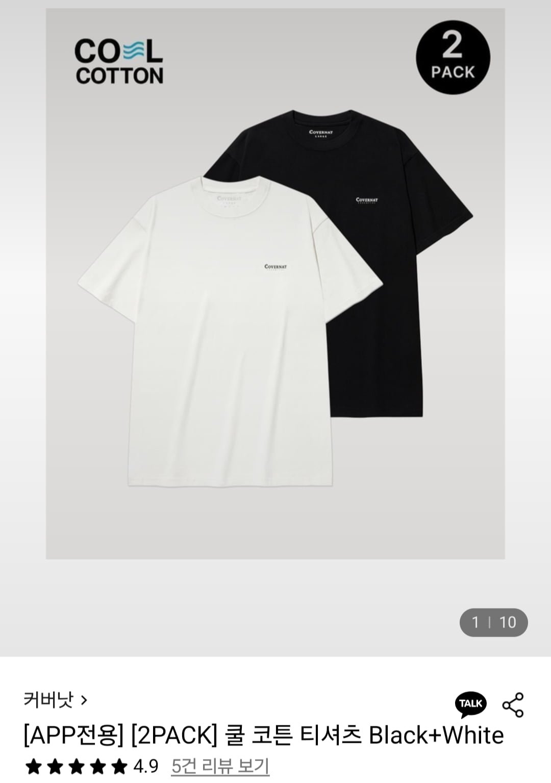 [롯데온]커버낫 쿨 코튼 티셔츠 Black+White (28,860원/무료) - 딜모아