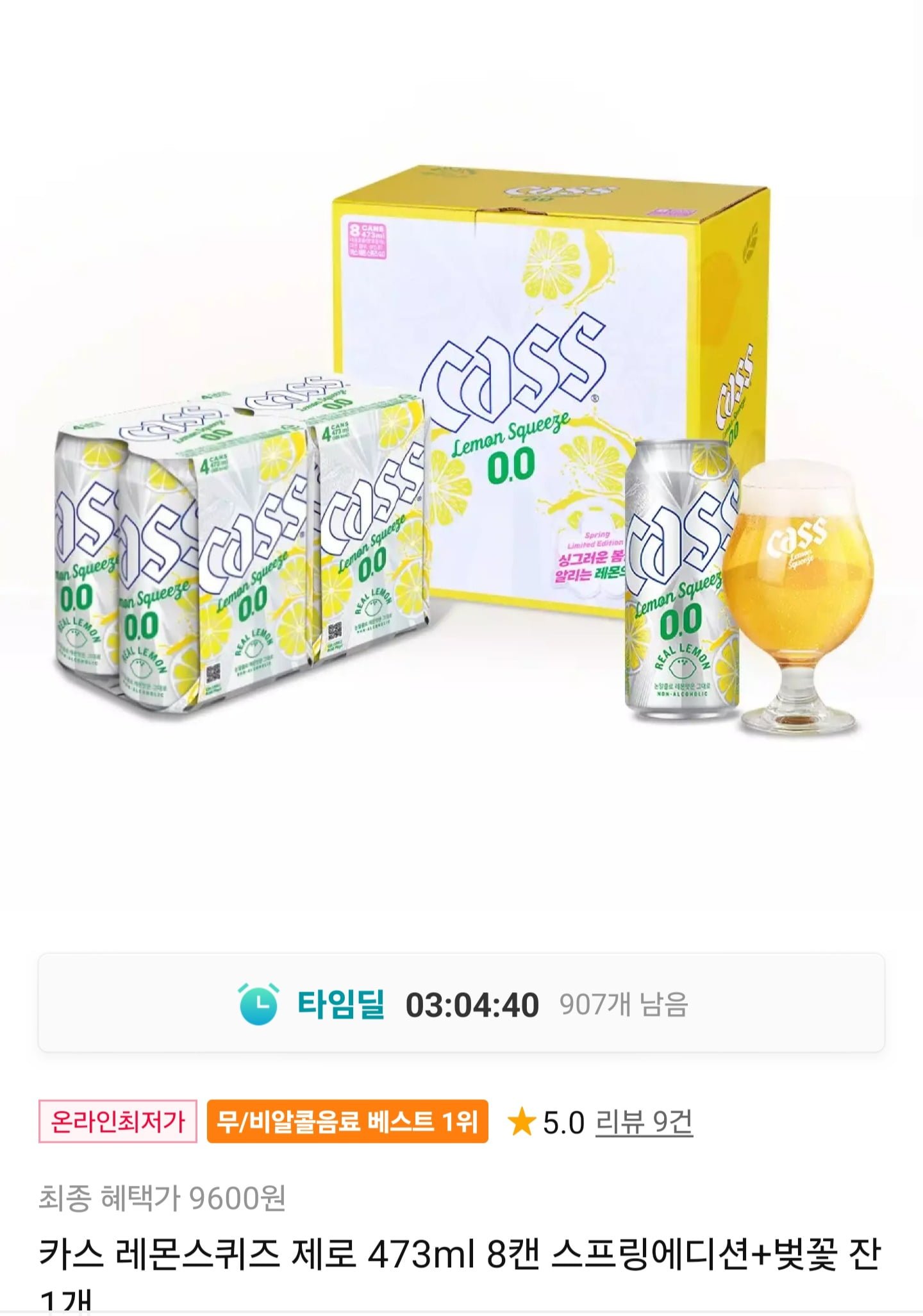 [11번가]카스 레몬스퀴즈 제로 473ml 8캔 스프링에디션 + 전용잔 1개 (9,600원/무료)