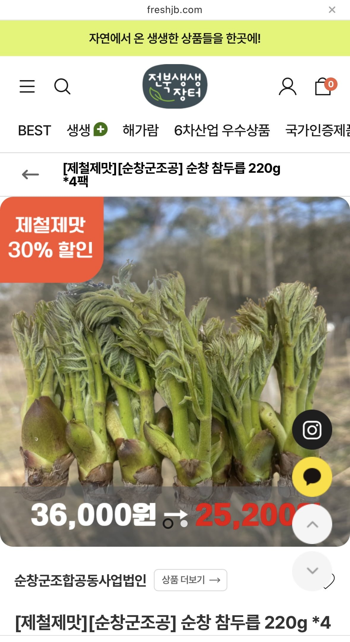 [지역몰]순창 참두릅 220g*4팩 (25,200원/무배)