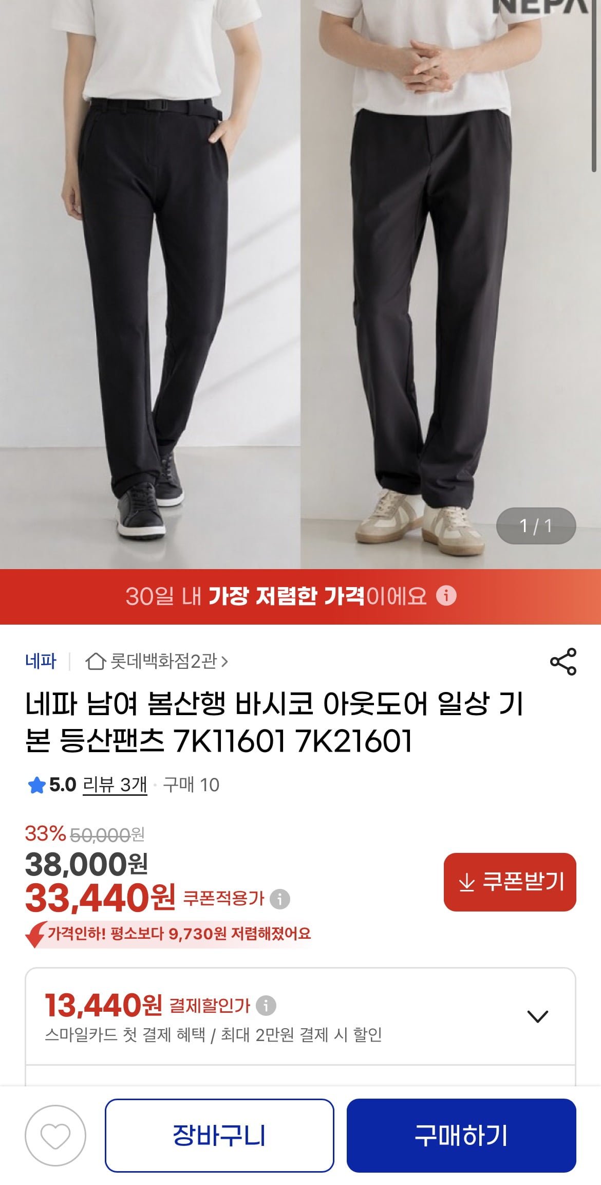 [G마켓]네파 남여 봄산행 바시코 아웃도어 등산팬츠 (33,440원/무배)