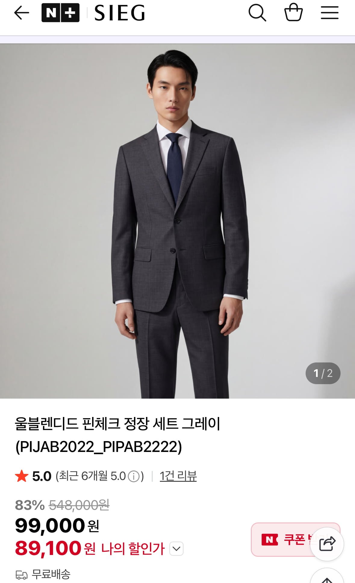 [네이버]지이크 울블렌디드 핀체크 정장세트 (89,100원/무료배송)