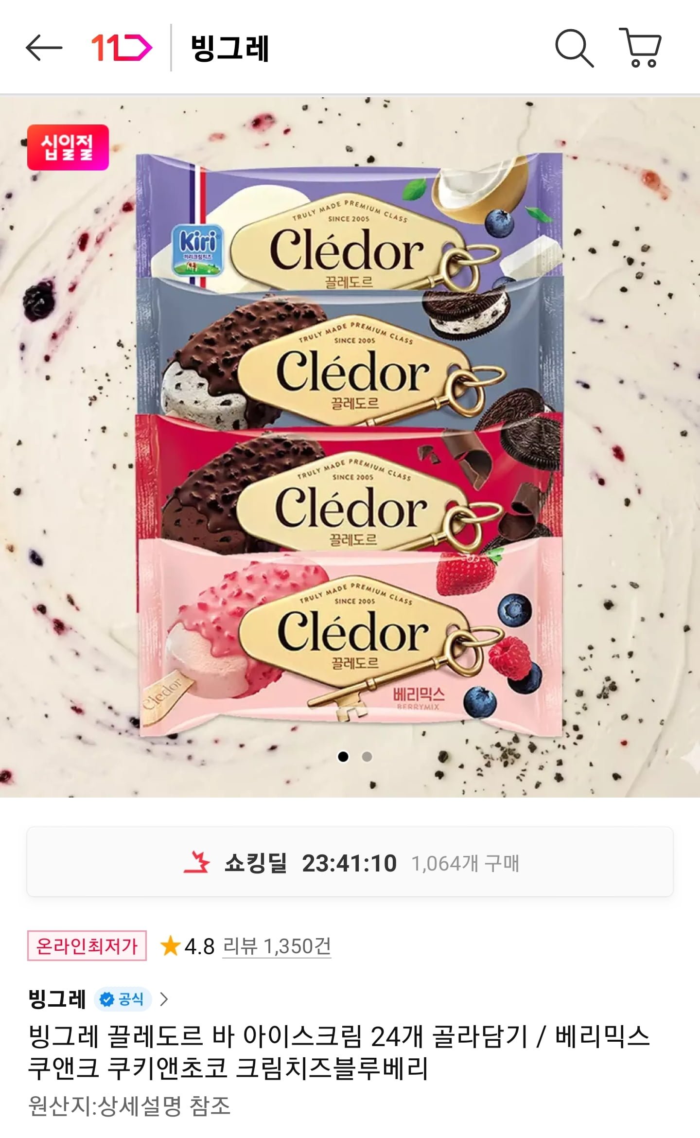 [11번가]빙그레 끌레도르 바 12+12개 골라담기 (22,200원/무료)