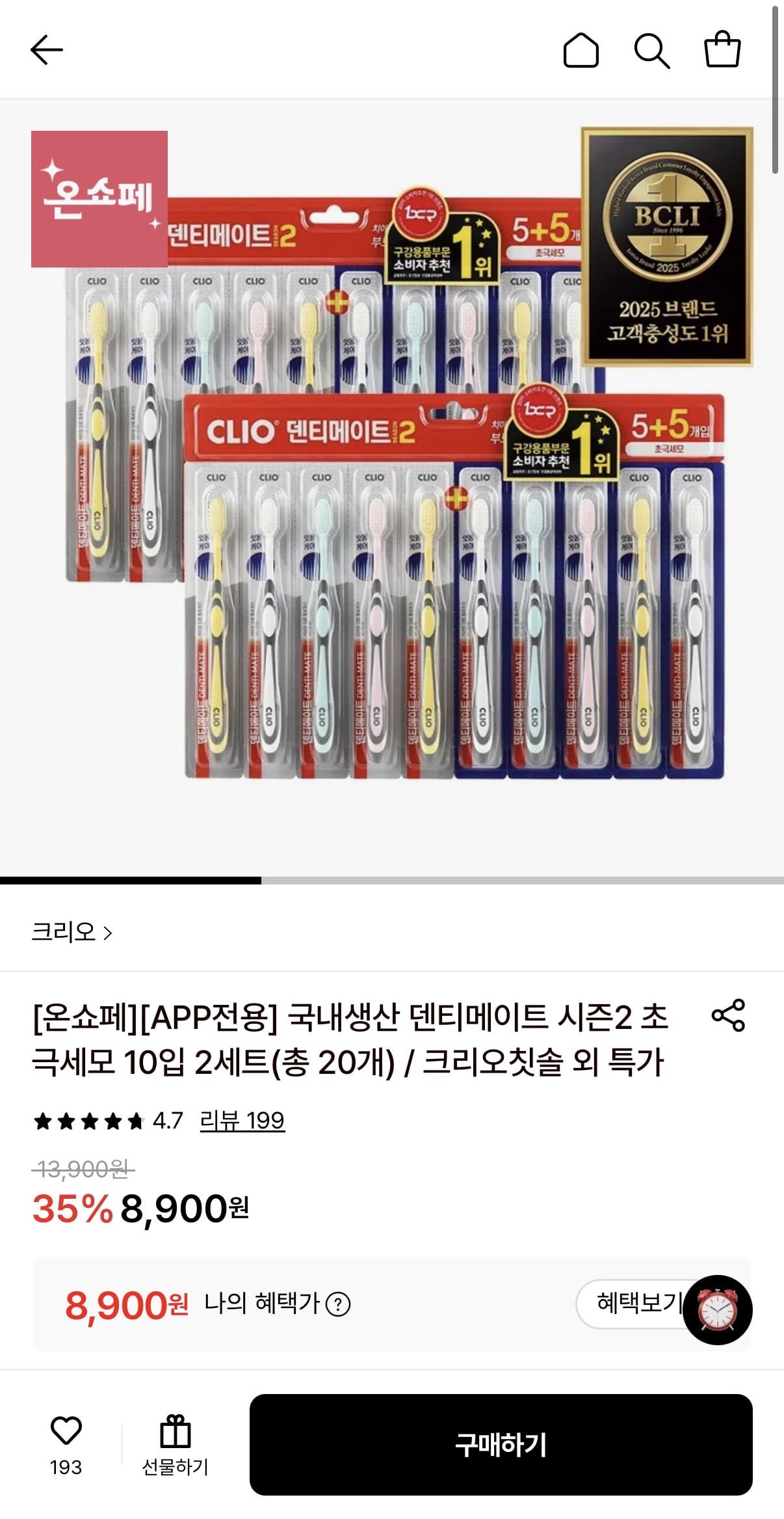 [롯데온]크리오 덴티메이트 시즌2 초극세모 5+5입 2세트(총 20개) (8,900원/무료)
