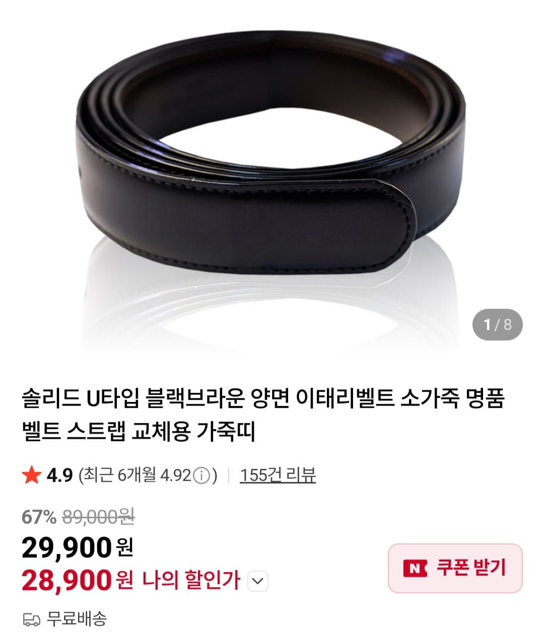 [네이버]솔리드 U타입 블랙브라운 소가죽벨트(29,900원/무료)