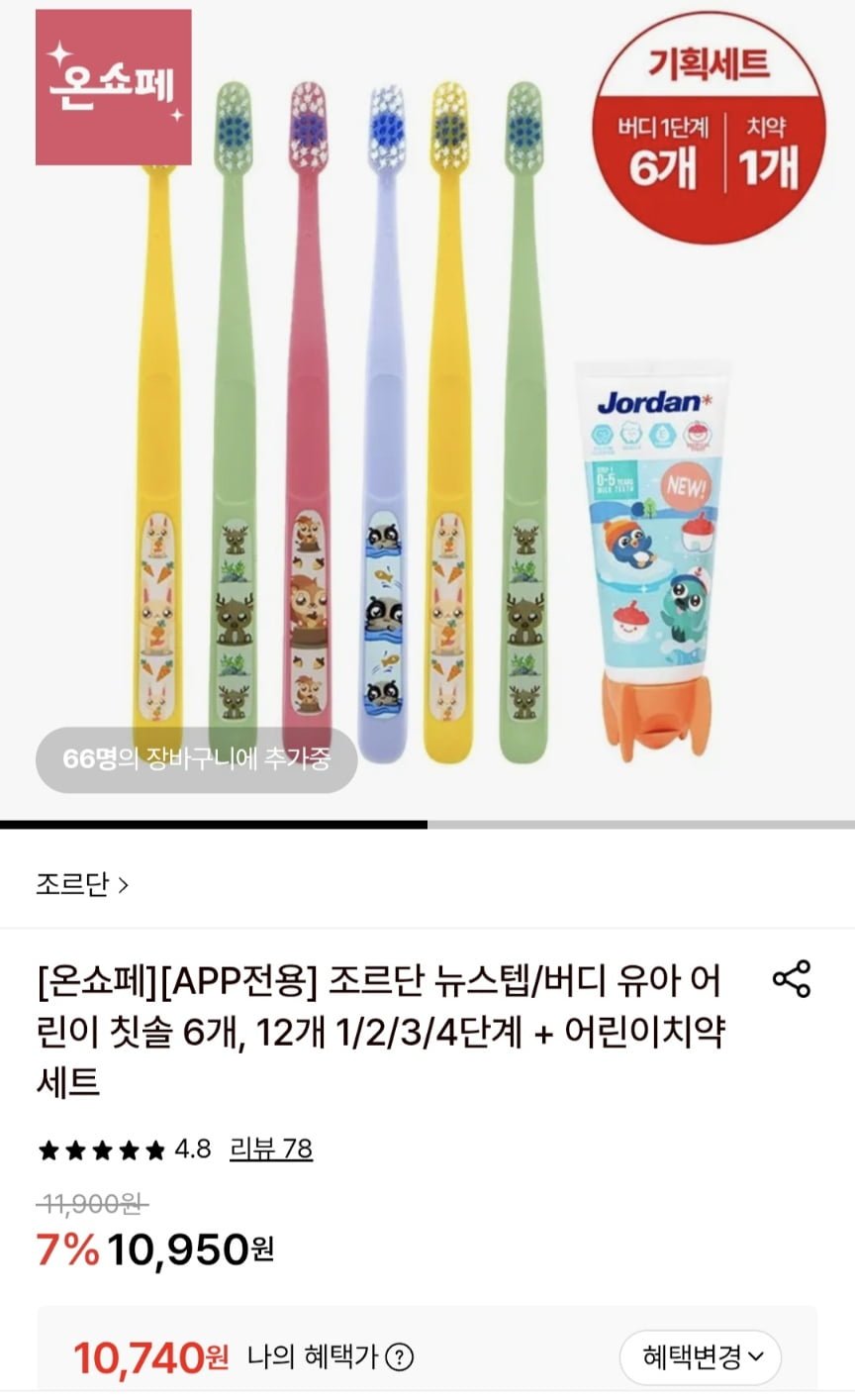 [롯데온]조르단 뉴스텝/버디 유아 어린이 칫솔 6개, 12개 1/2/3/4단계 (7,040원/무료)