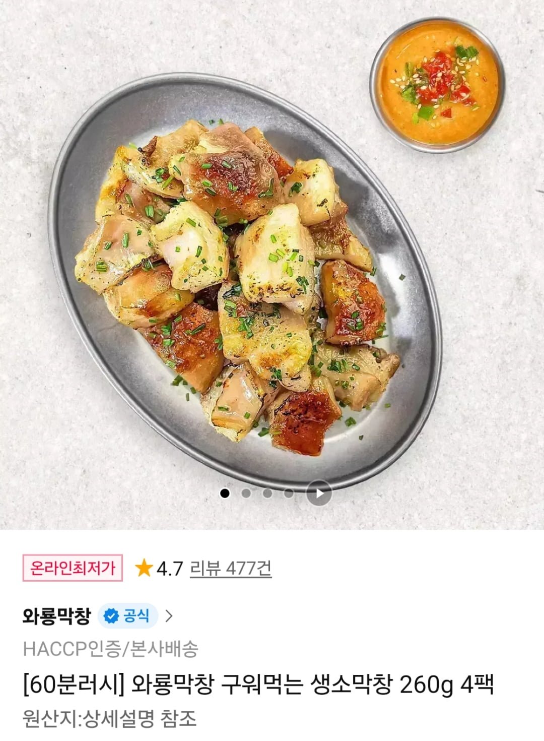 [11번가]와룡 구워먹는 생소막창 260g 4팩 (22,900원 / 무료)