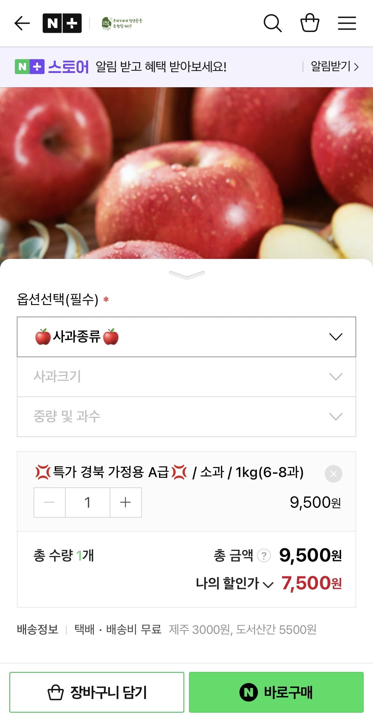 [네이버]청송 안동 부사사과 1kg (7,500원/무배)