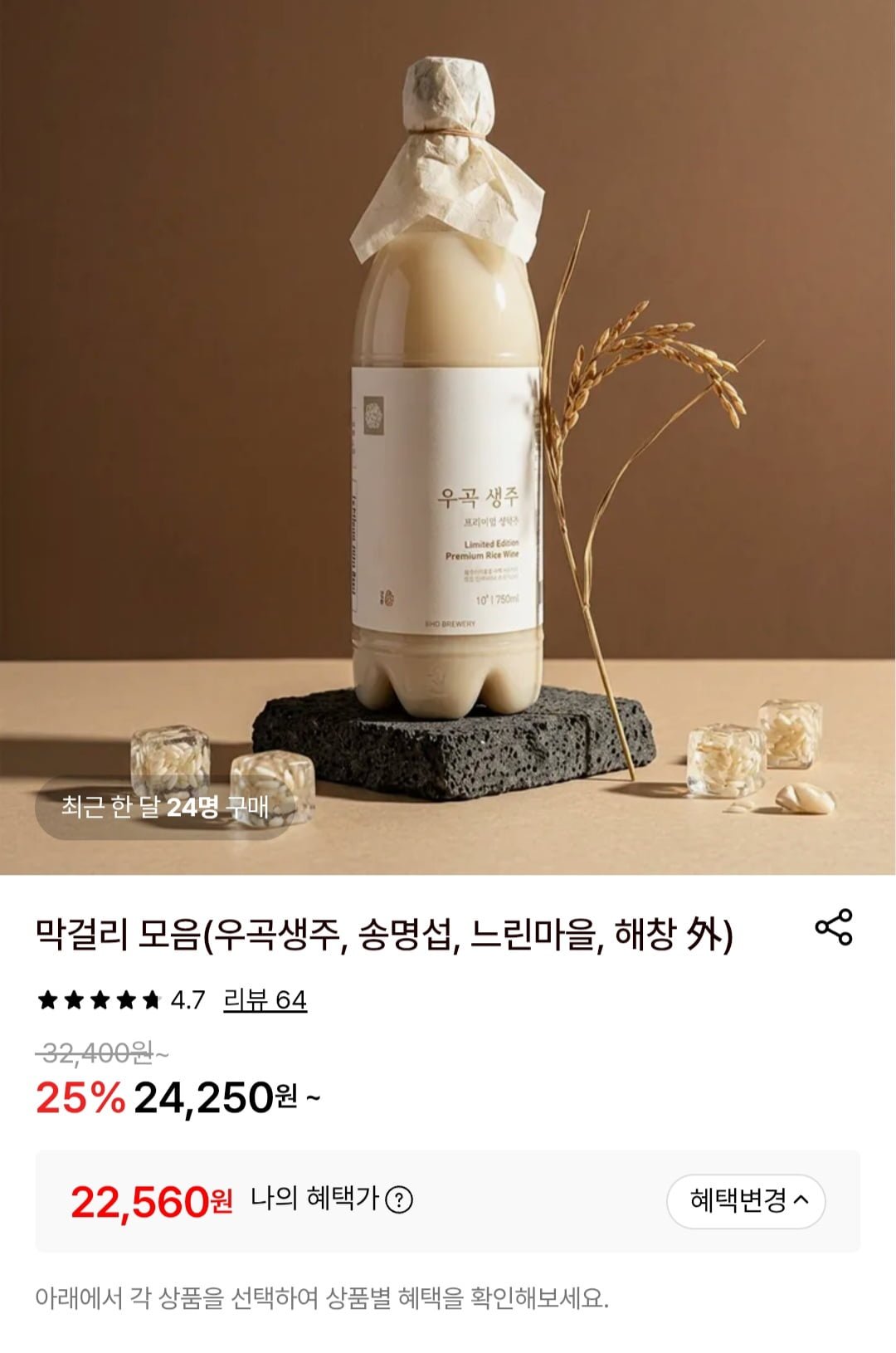 [롯데온]배혜정도가 우곡생주 생막걸리 10도 750ml x4병 무감미료 (22,560원/무료)