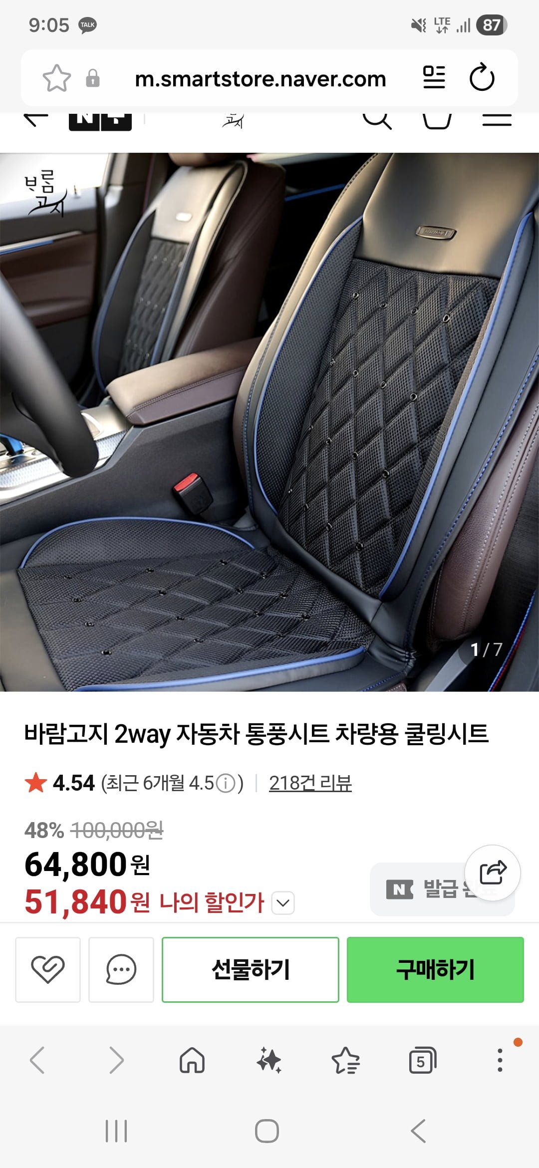 [네이버]바람고지 2way 통풍시트 (51,840원/무료)