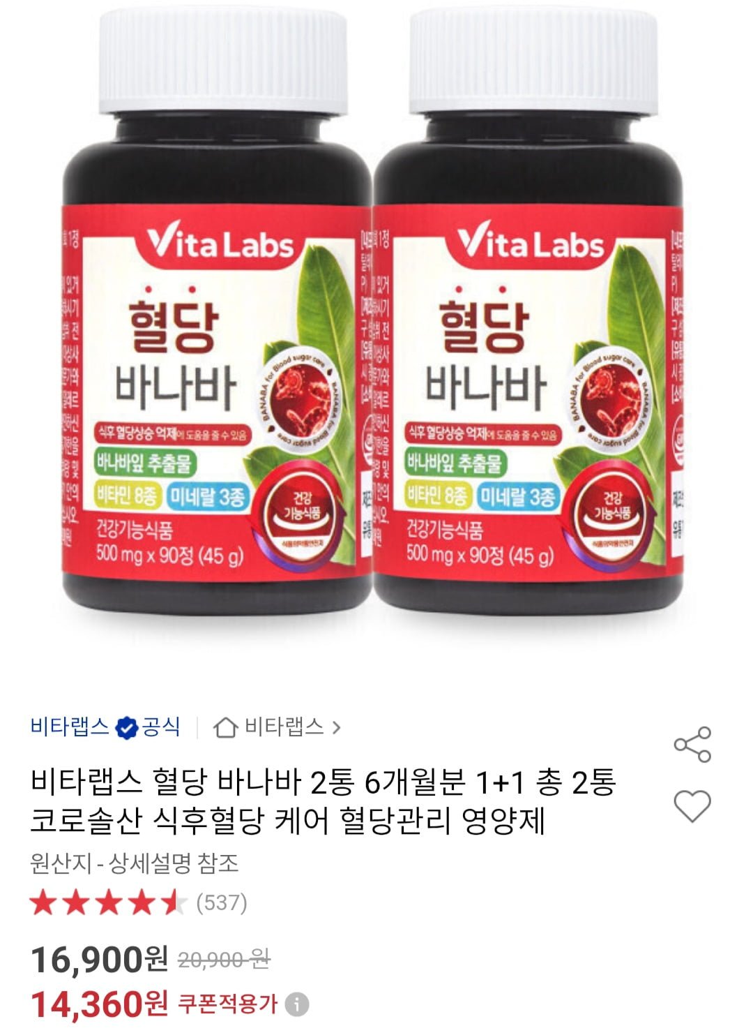 [옥션]비타랩스 혈당 바나바 2통(6개월분) (14,360원/무료)