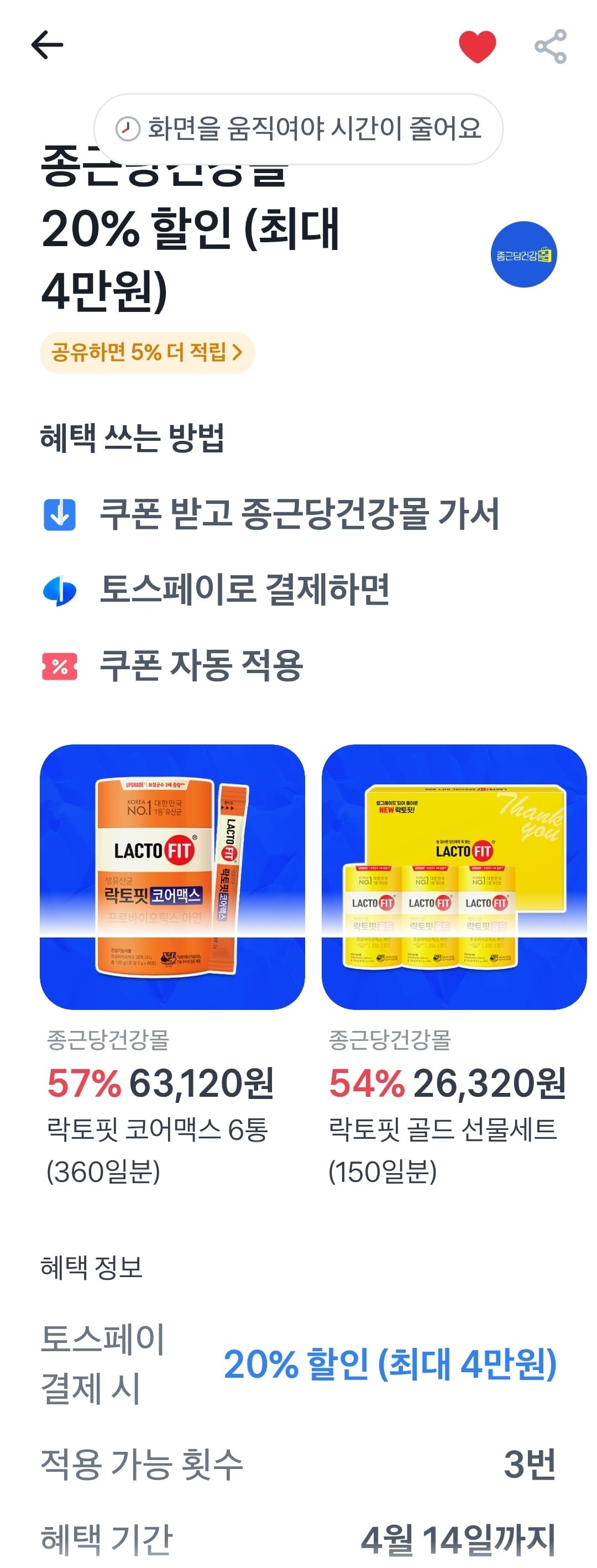 [종근당건강몰]락토핏 코어 360포 기획세트 +틴케이스+스티커(55,920원/무료)