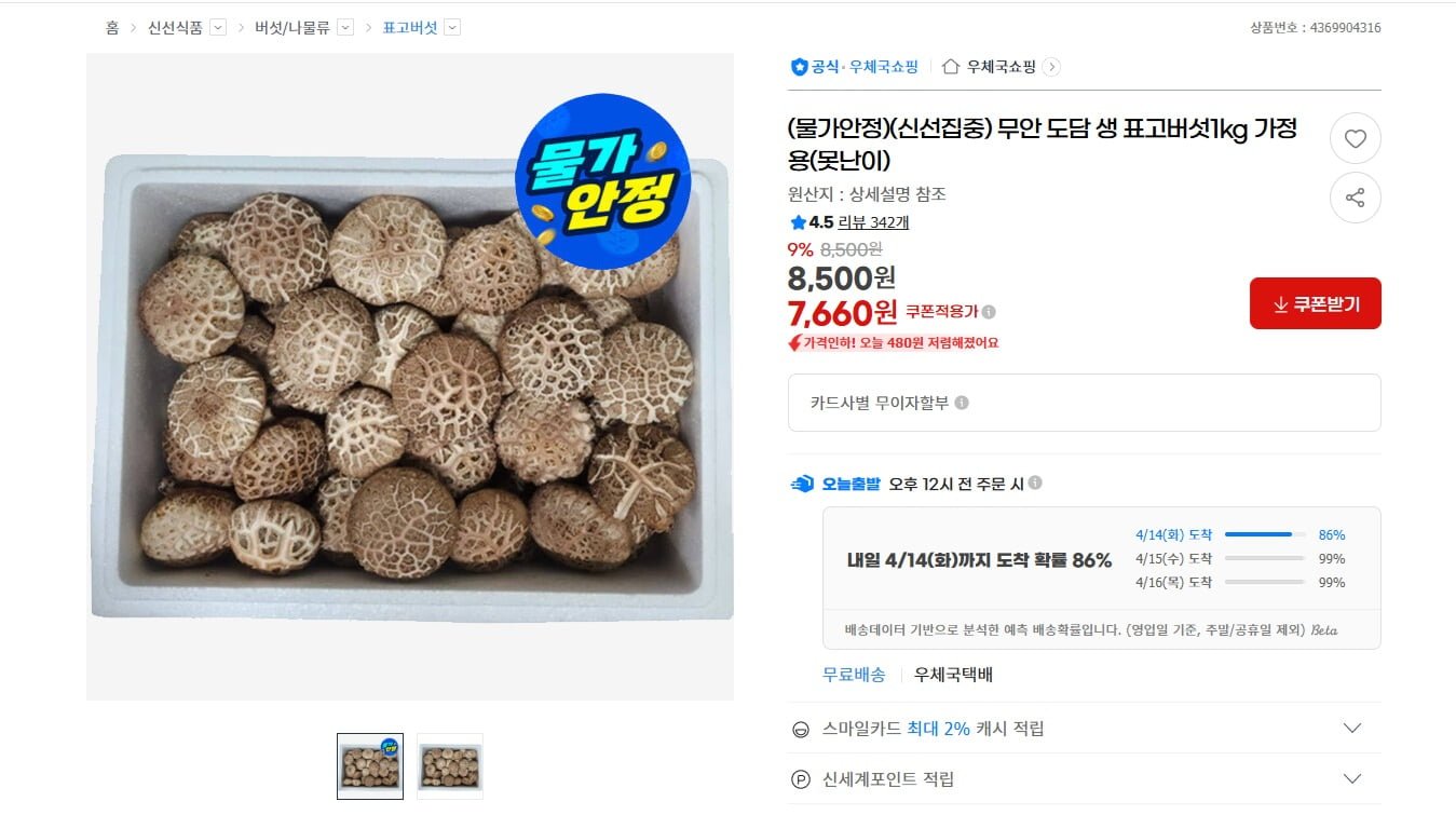[ G마켓 ] (물가안정)(신선집중) 무안 도담 생 표고버섯1kg 가정용(못난이) 7,660원/무료배 - 딜모아