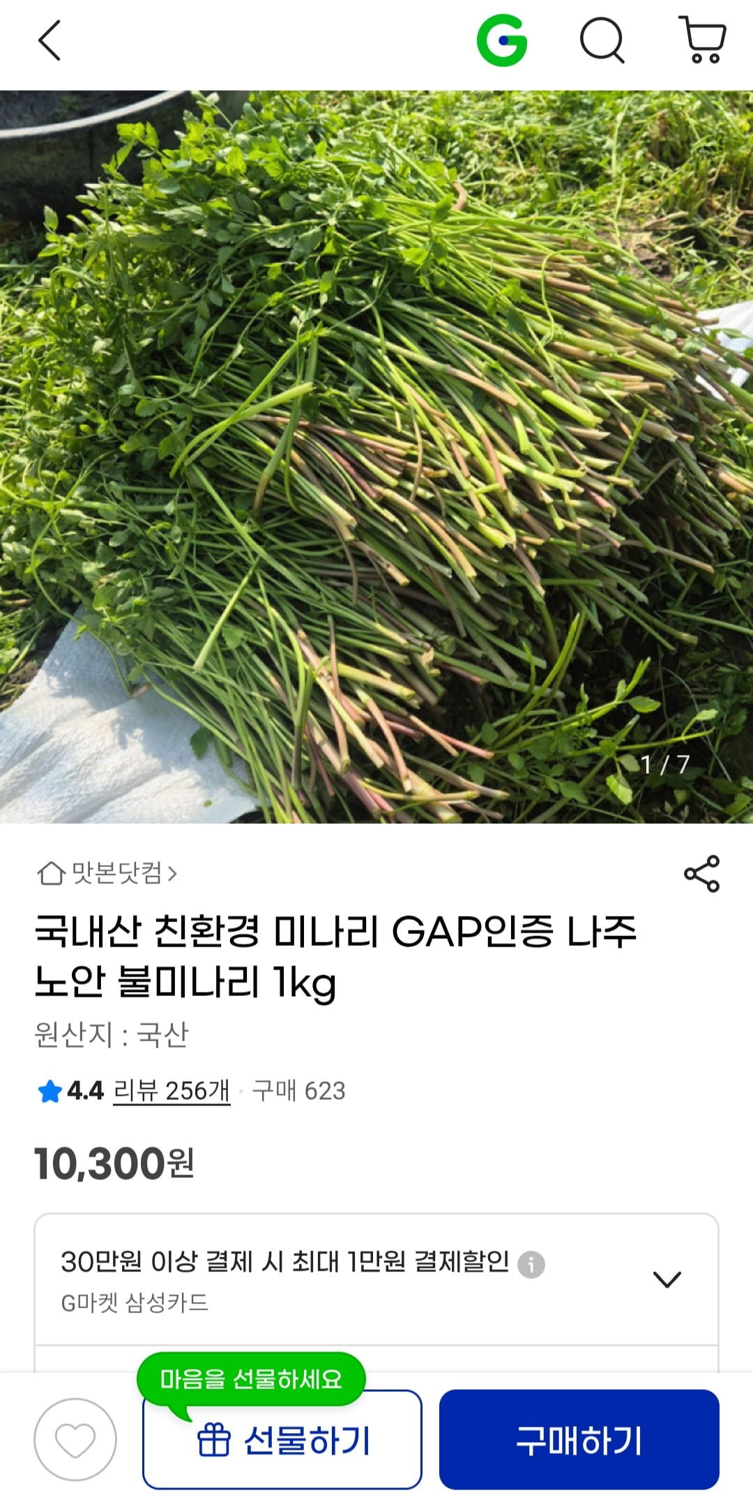 [G마켓]국내산 GAP 미나리 1kg(10,300/무배